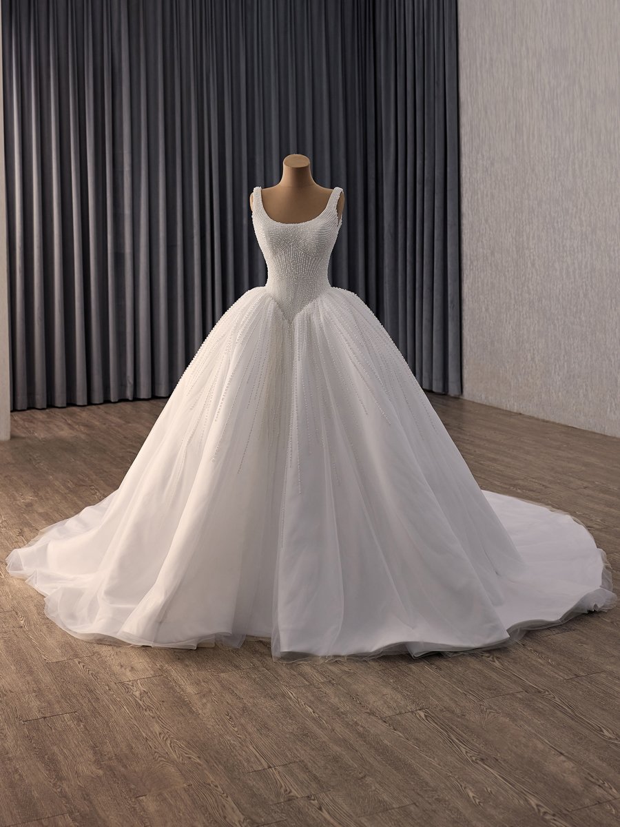 Gorgeous Ivory Beaded Pearls Ball Gown Sleeveless Lace Up Back Wedding Dress Bridal Gown Elegant