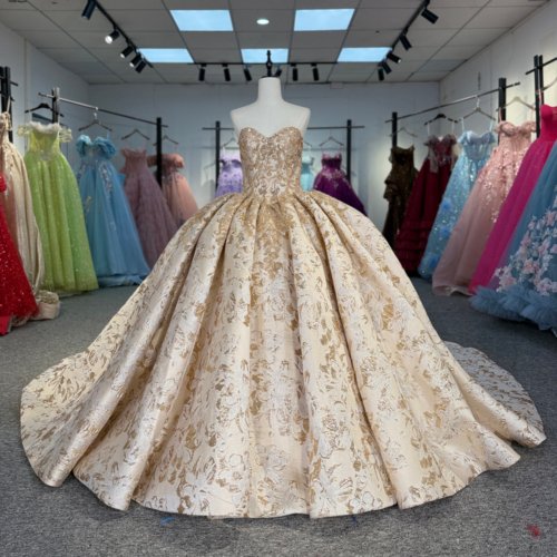 • Regal Champagne Strapless Sweetheart Floral Sequined Quinceanera Dress Ball Gown