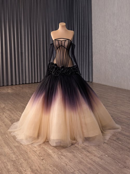 • Sleek Black Beige Ombre Evening Gown Corset Ruffles Sweetheart Mermaid Formal Dress