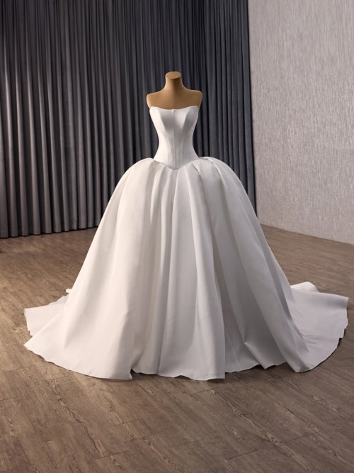 • Luxury Ivory Satin Wedding Gown Strapless Corset Lace Up Chapel Ballgown Dress