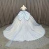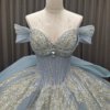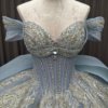 2025 Blue Quinceanera Dress Sweet 15 Off Shoulder Quinceañera Flowers Vestidos De 15 Años Sequined Beading Lace Evening Party Dress MW82