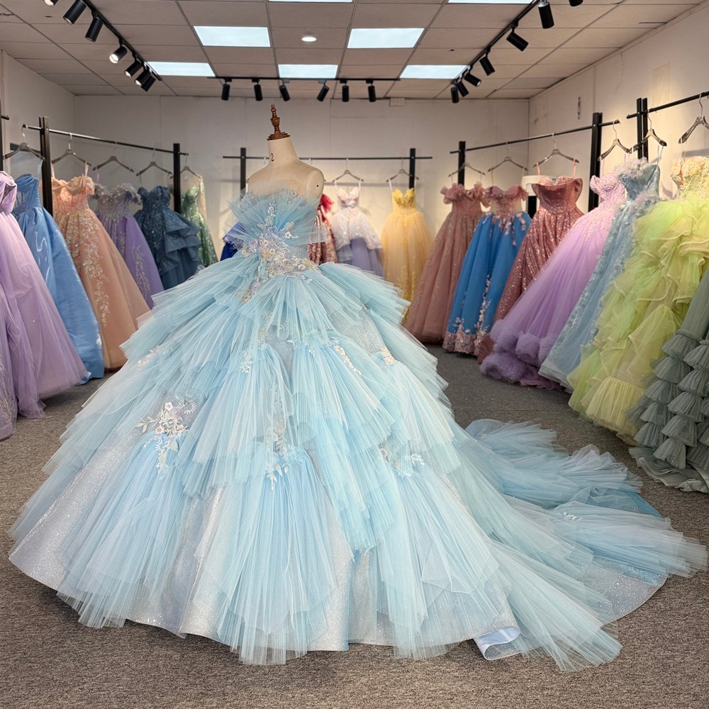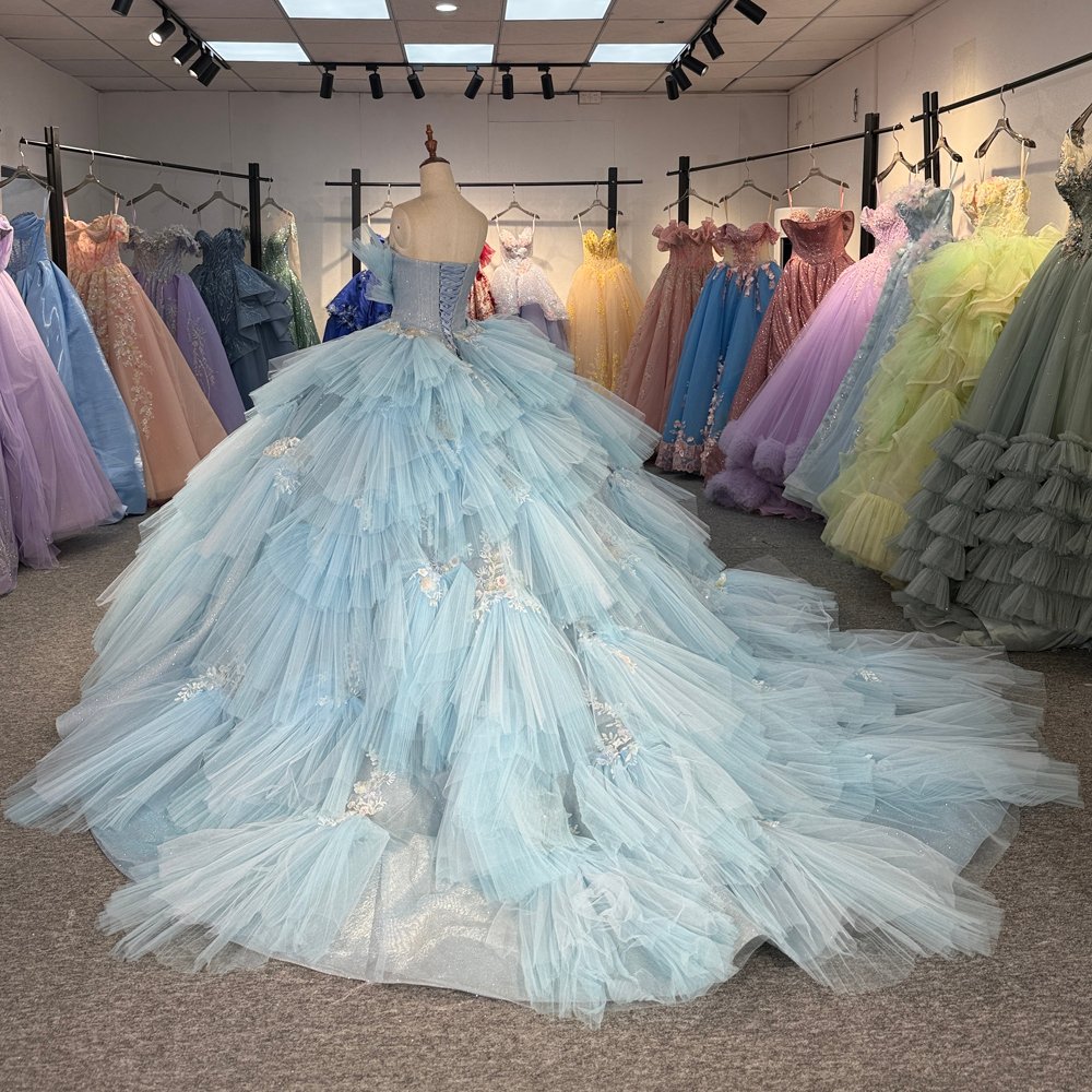 2025 Cinderella Blue Quinceanera Dress Sweet 15 Quinceañera Flowers Vestidos De 15 Años Sequined Beading Lace Evening Party Dress 6871
