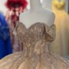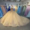 2025 Gold Quinceanera Dress Sweet 15 Quinceañera Flowers Vestidos De 15 Años Sequined Beading Lace Evening Party Dress 6887