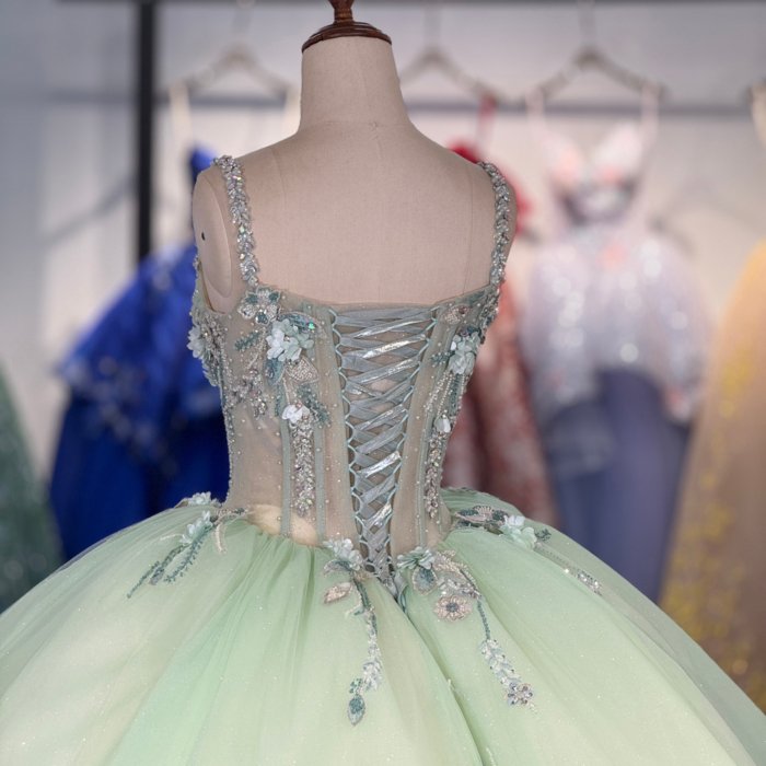 2025 Green Quinceanera Dress Sweet 15 Quinceañera Flowers Vestidos De 15 Años Sequined Beading Lace Evening Party Dress 6877