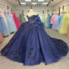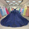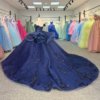 2025 Navy Blue Quinceanera Dress Sweet 15 Quinceañera Flowers Vestidos De 15 Años Sequined Beading Lace Evening Party Dress 1309