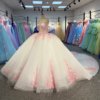 2025 Pink White Quinceanera Dress Sweet 15 Quinceañera Flowers Rosa Vestidos De 15 Años Sequined Beading Lace Evening Party Dress 20283