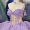 2025 Purple Quinceanera Dress Sweet 15 Quinceañera Flowers Vestidos De 15 Años Sequined Beading Lace Lilac Evening Party Dress 20259