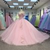 2025 Quinceanera Dress Vestidos De 15 Quinceañera Flowers Vestidos De 15 Años Pink V-neck Beading Lace Evening Party Dress 6756