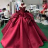 3 in 1 Exquisite Burgundy Ball Gown Beaded Off The Shoulder Princess Dress With Ruffles For Wedding