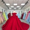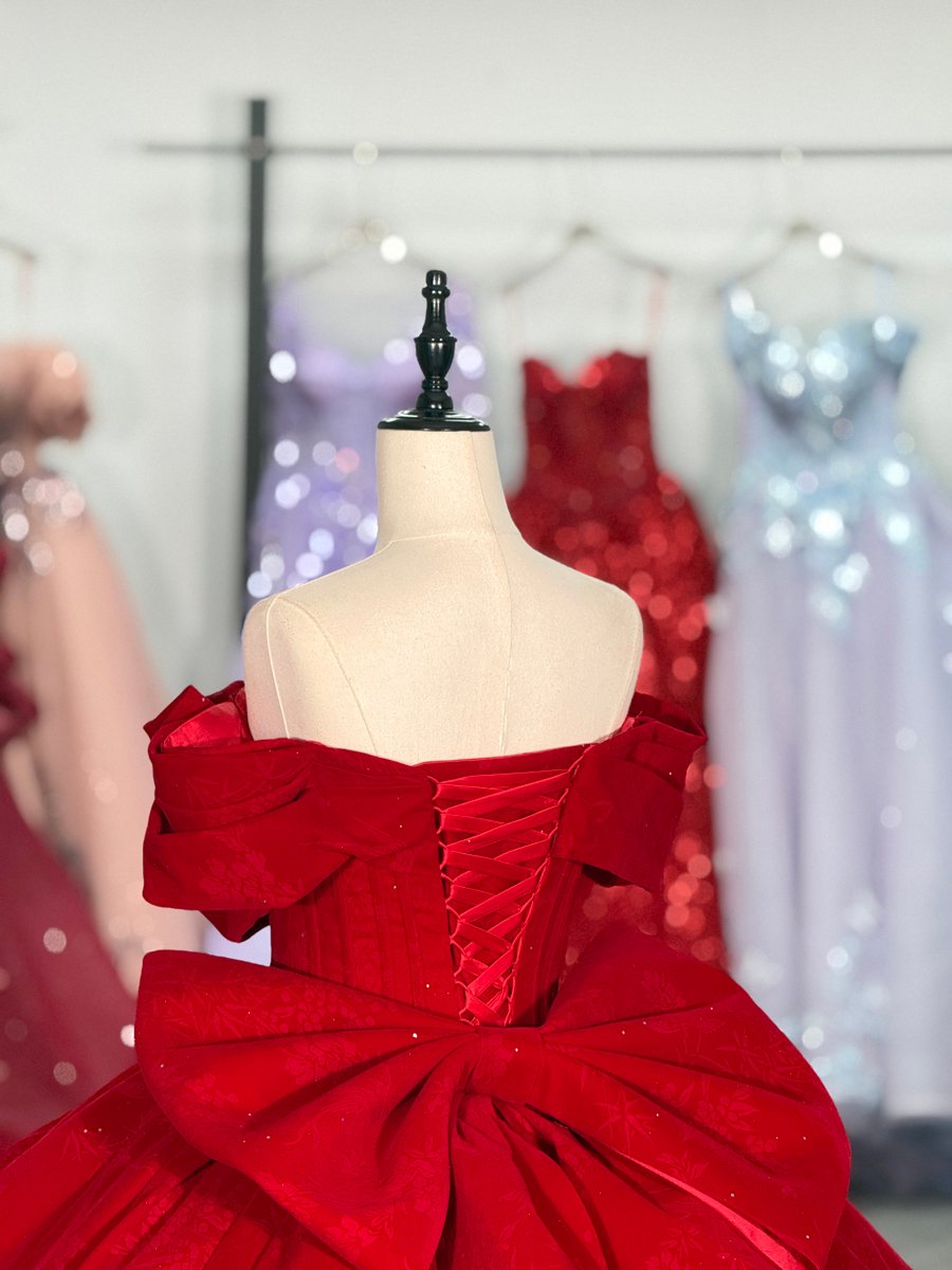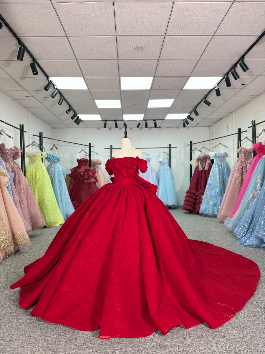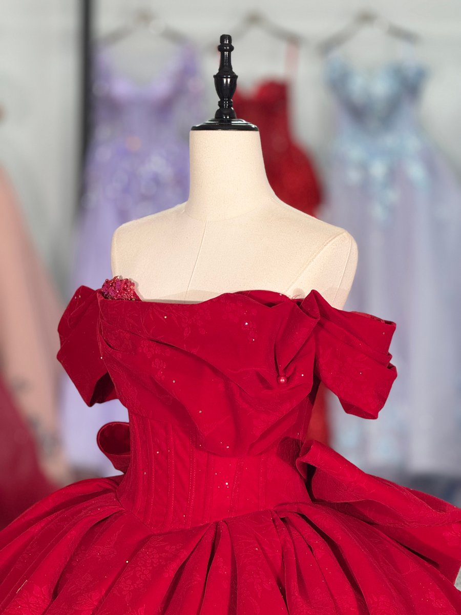 Classic Red Quinceanera Dress Off Shoulder Pleated Satin Quinceanera Dress Minimalist Ball Gown Elegant Formal Prom Gown