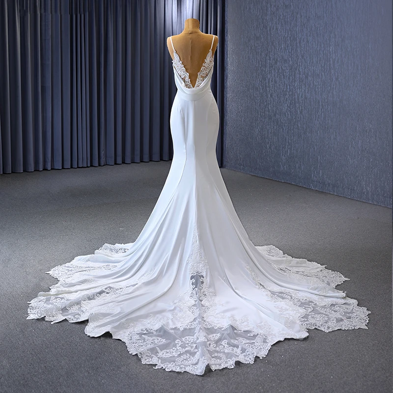 Classic Wedding Suits For Women Satin Mermaid Spaghetti Straps White dress Draped RSM222142 Vestido De Novias 2023
