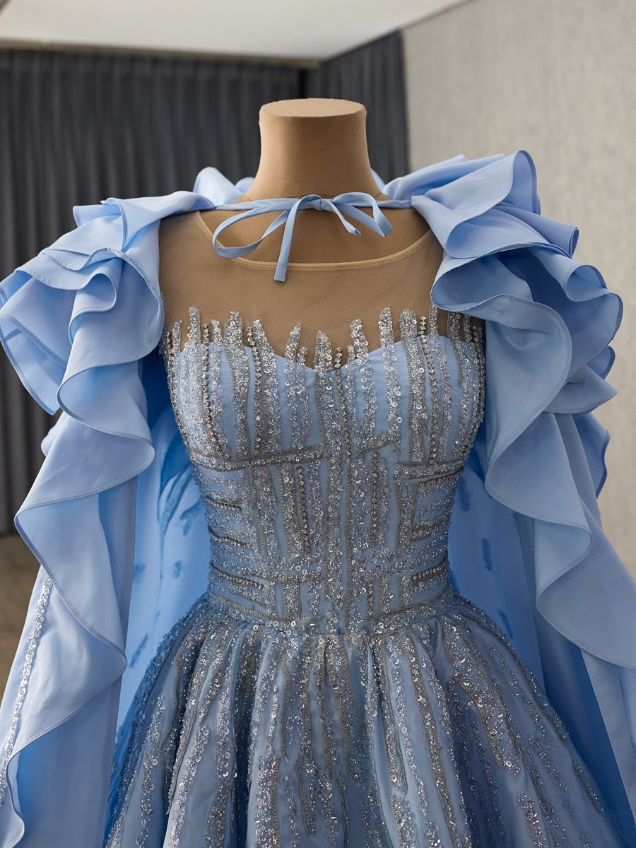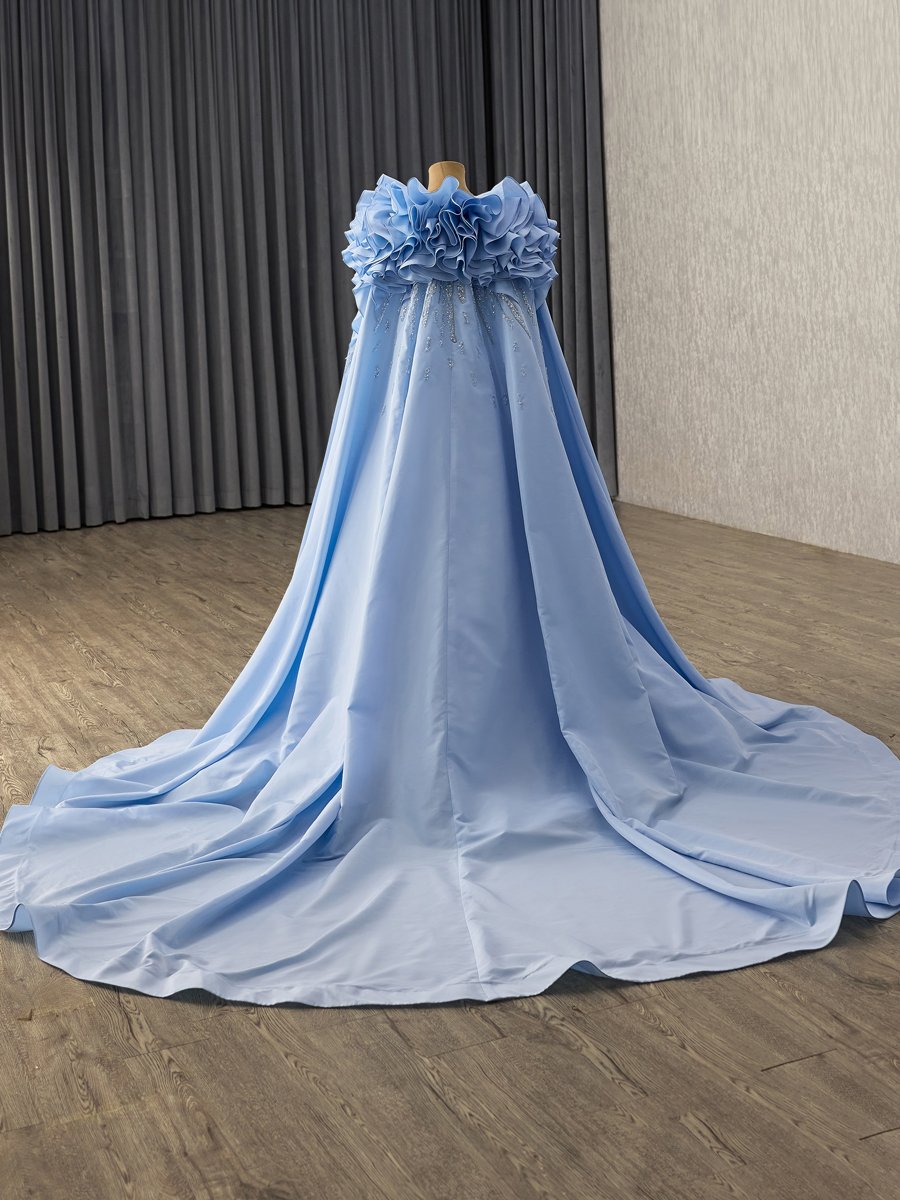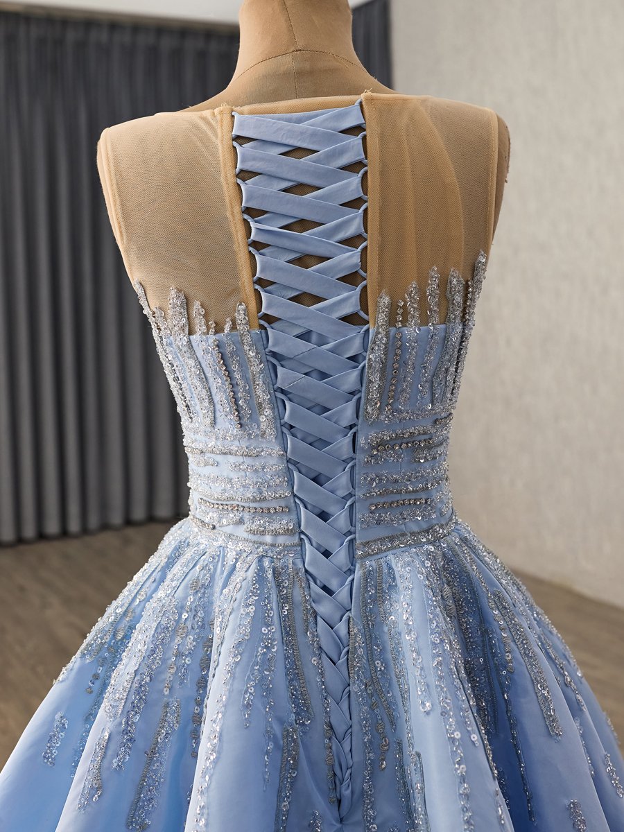 Elegant Blue Evening Dress Ball Gown Sweetheart Sequin Long Prom Gown With Wrap