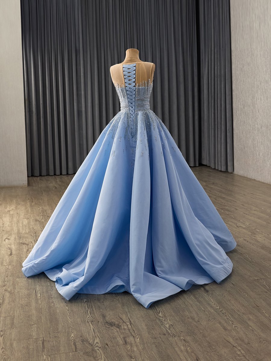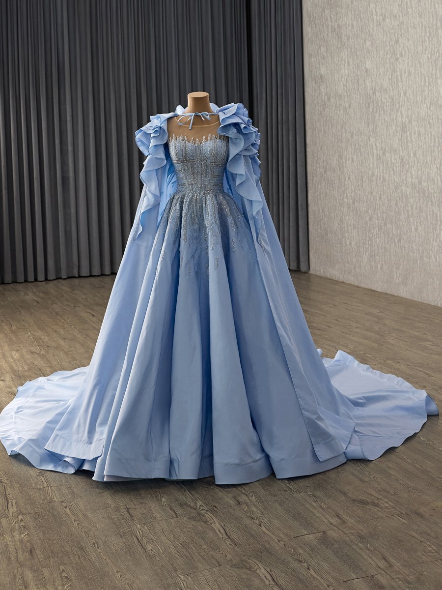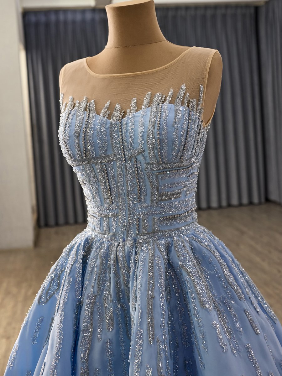 Elegant Blue Evening Dress Ball Gown Sweetheart Sequin Long Prom Gown With Wrap