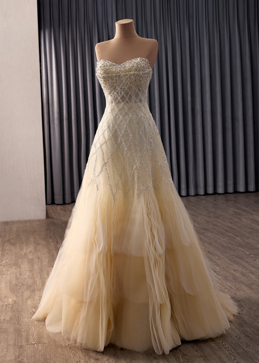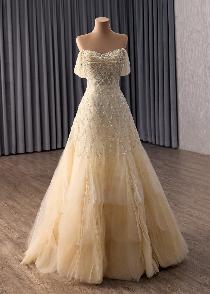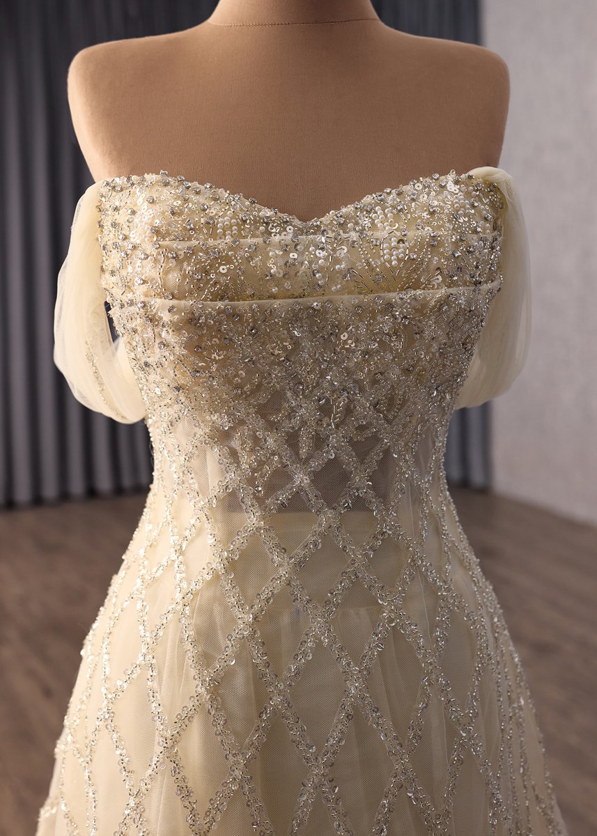 Elegant Champagne Evening Dress Sequin Beaded Tulle Evening Gown A Line For Formal Prom Party