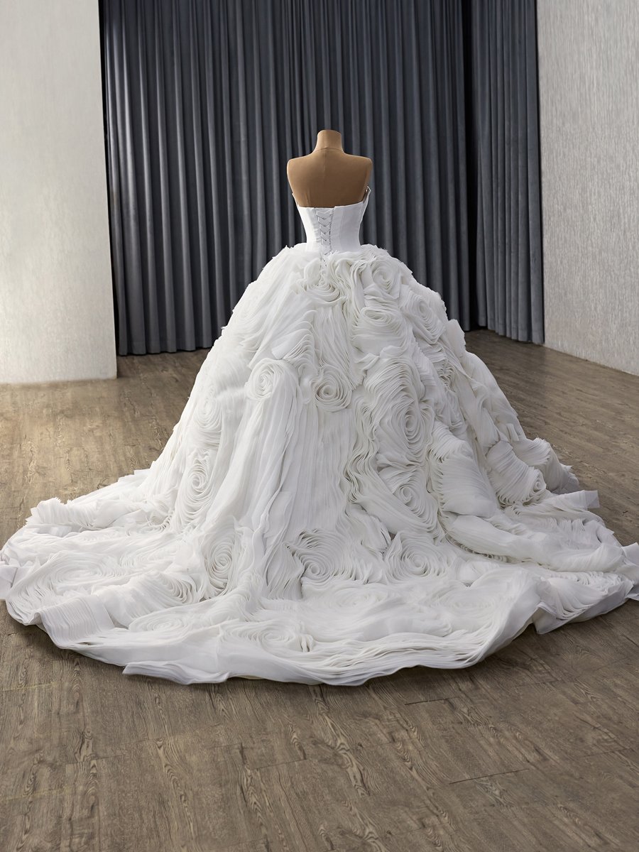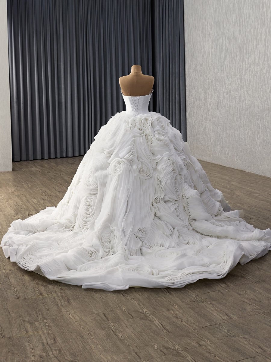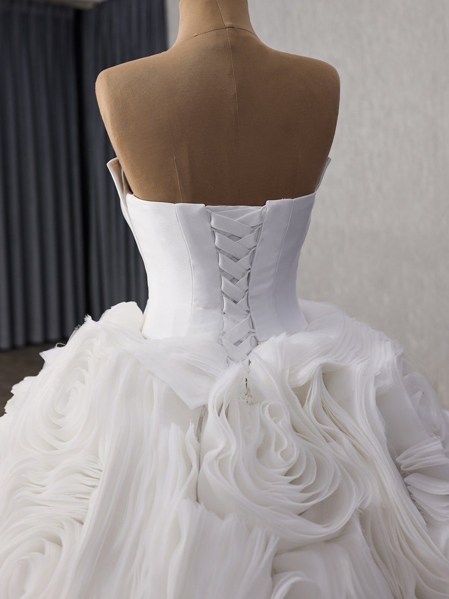 Elegant Ivory Wedding Dress Strapless Ball Gown Beaded Corset Organza Bridal Gown With Train