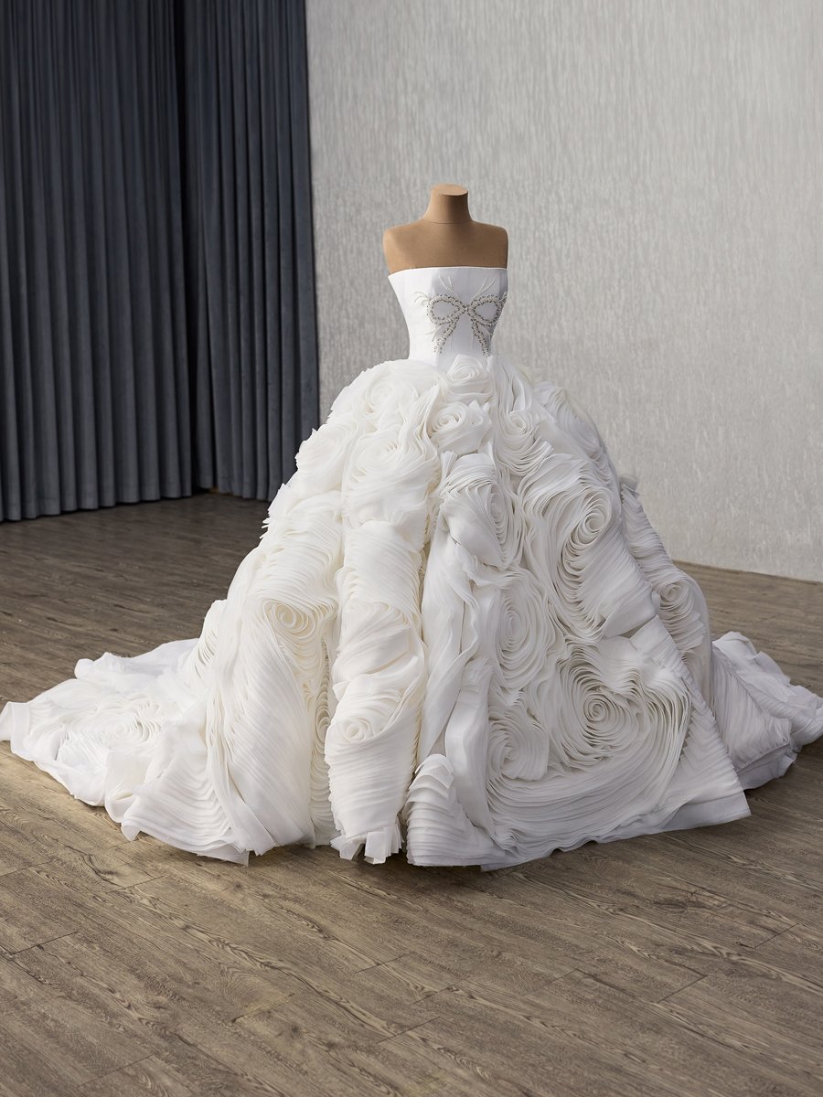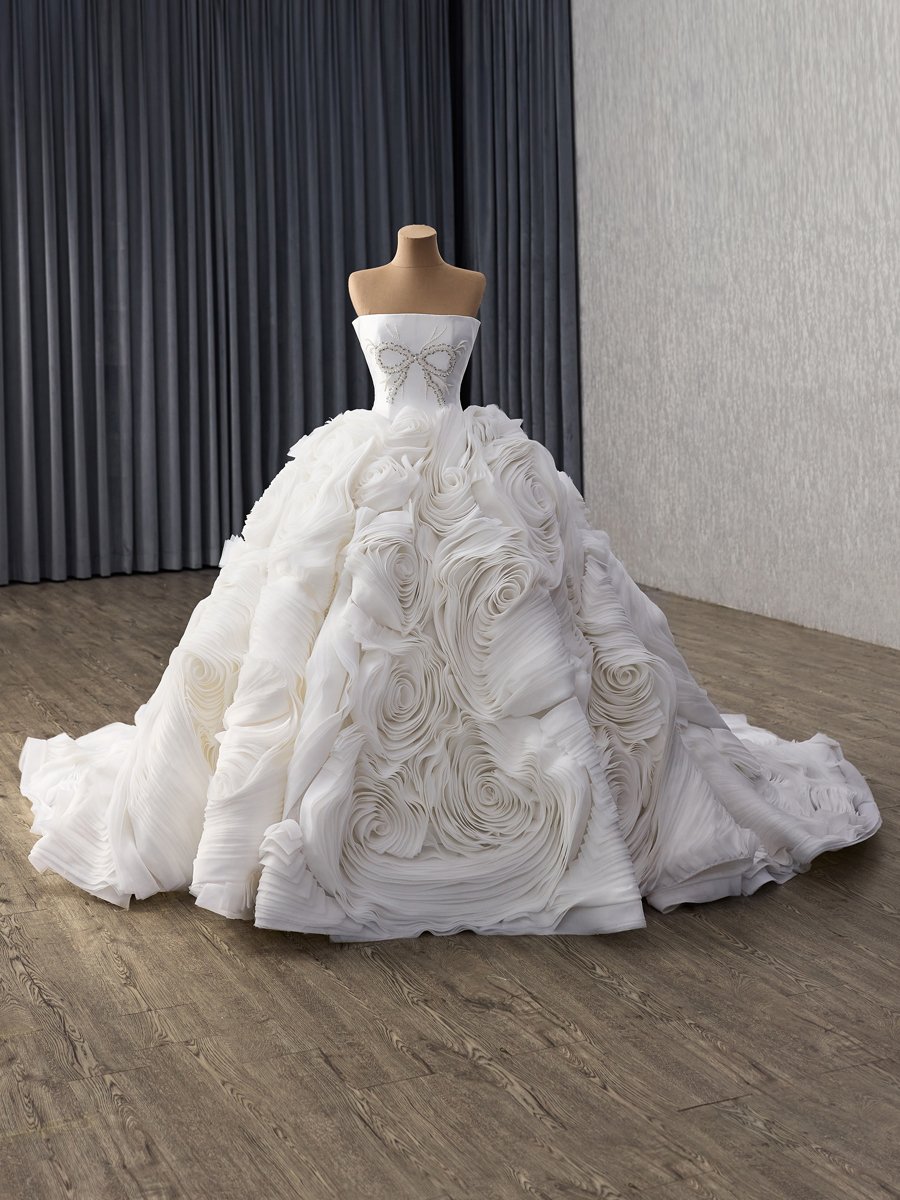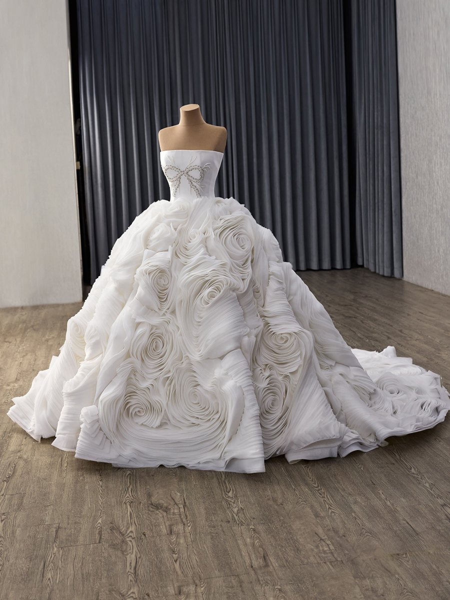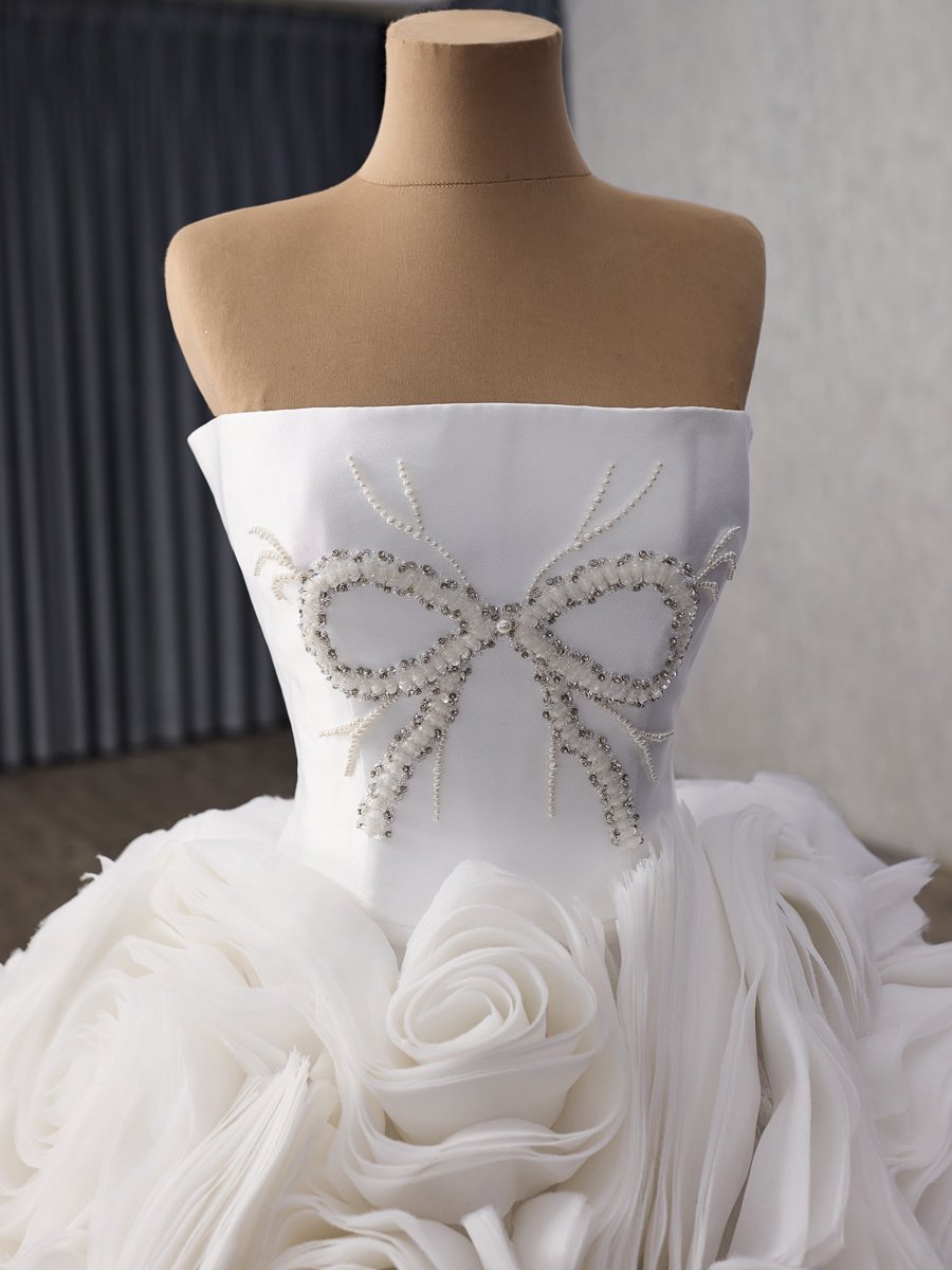 Elegant Ivory Wedding Dress Strapless Ball Gown Beaded Corset Organza Bridal Gown With Train