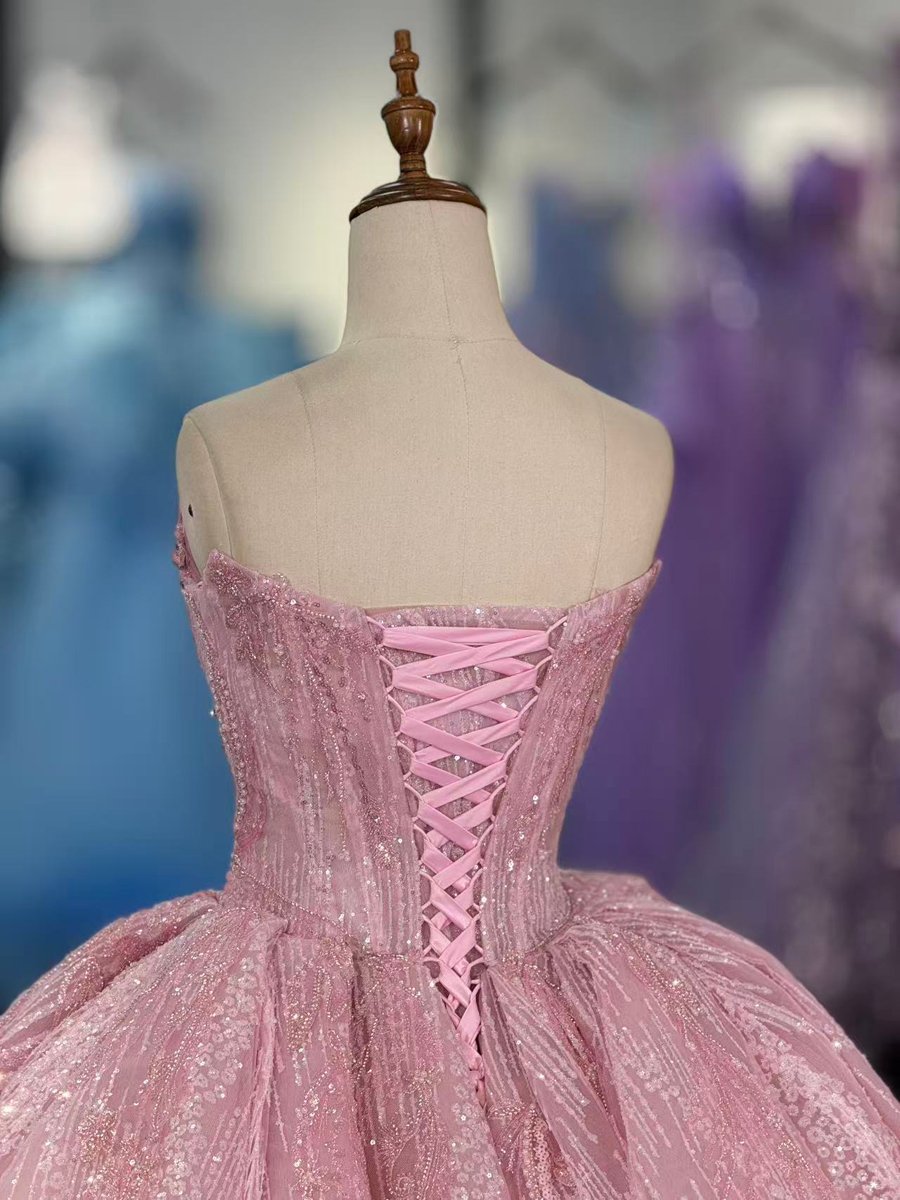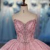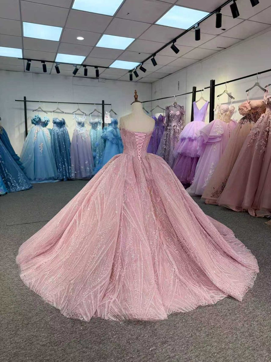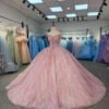Elegant Pink Quinceanera Dress Off Shoulder Glitter Tulle Quinceanera Dress Sparkly Ball Gown Sweet 16 Birthday Gown