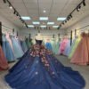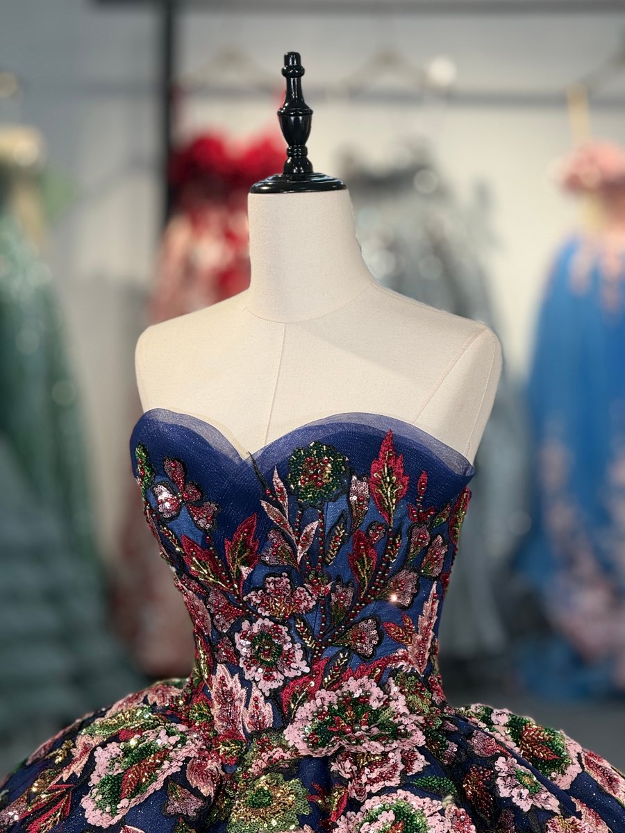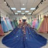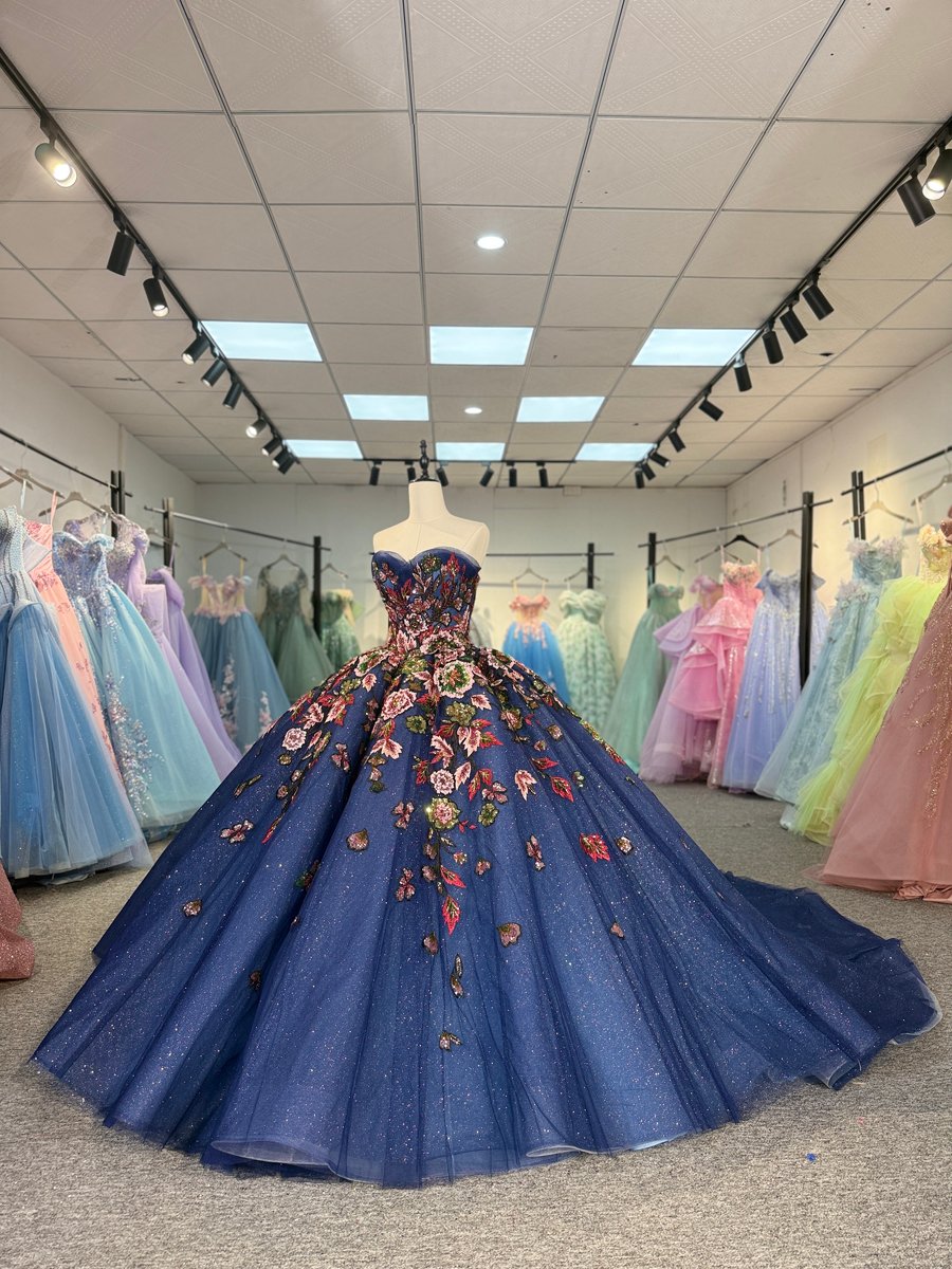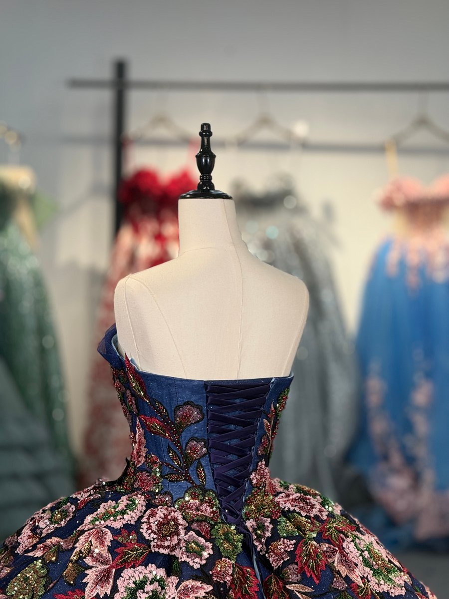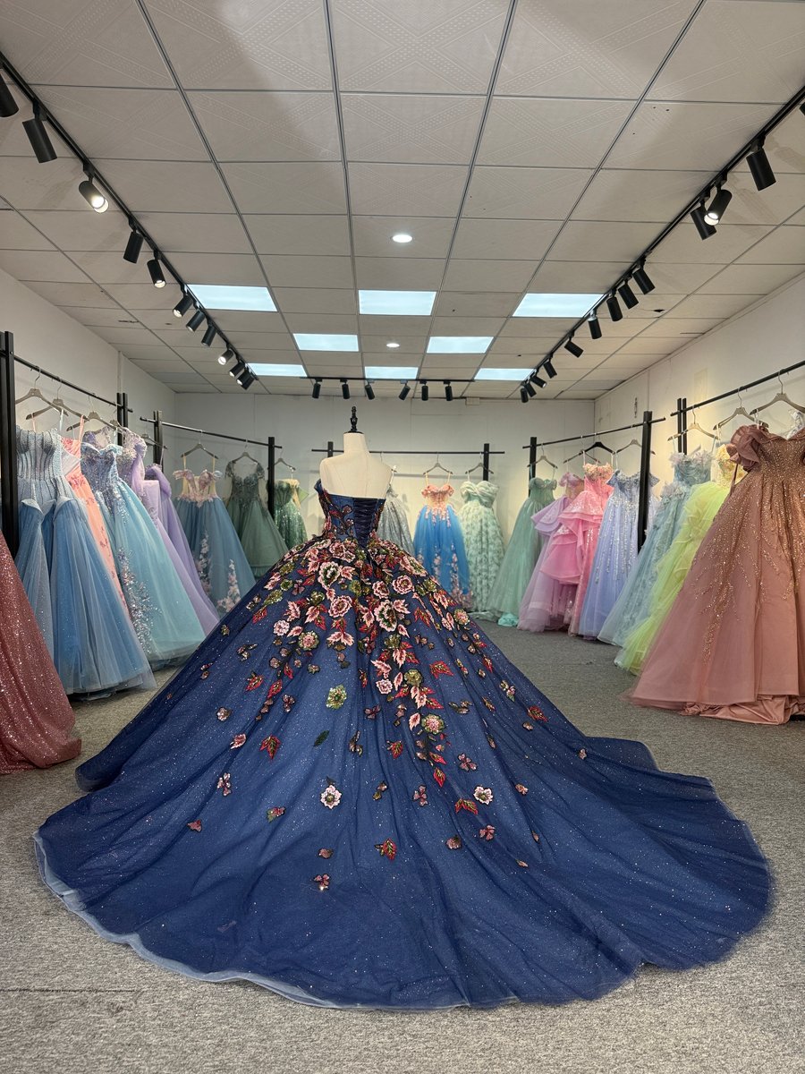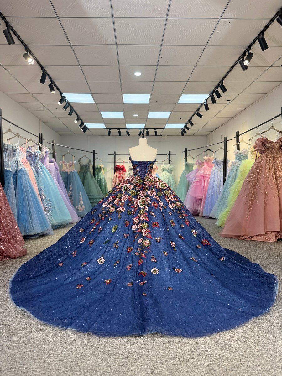 Elegant Royal Blue Quinceanera Dress Off Shoulder Floral Applique Sparkling Tulle Ball Gown Princess Prom Gown