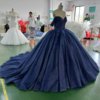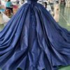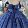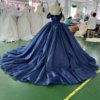 Enchanting Sparkly Navy Blue Quinceanera Dress Ball Gown Off Shoulder Long Train Appliques Sweet 16 Dress