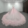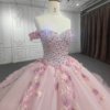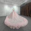 Evening Dresses for Weddings Ball Gown Off The Shoulder Deep V-Neck Tulle Pearls Pink Quinceanera Dresses