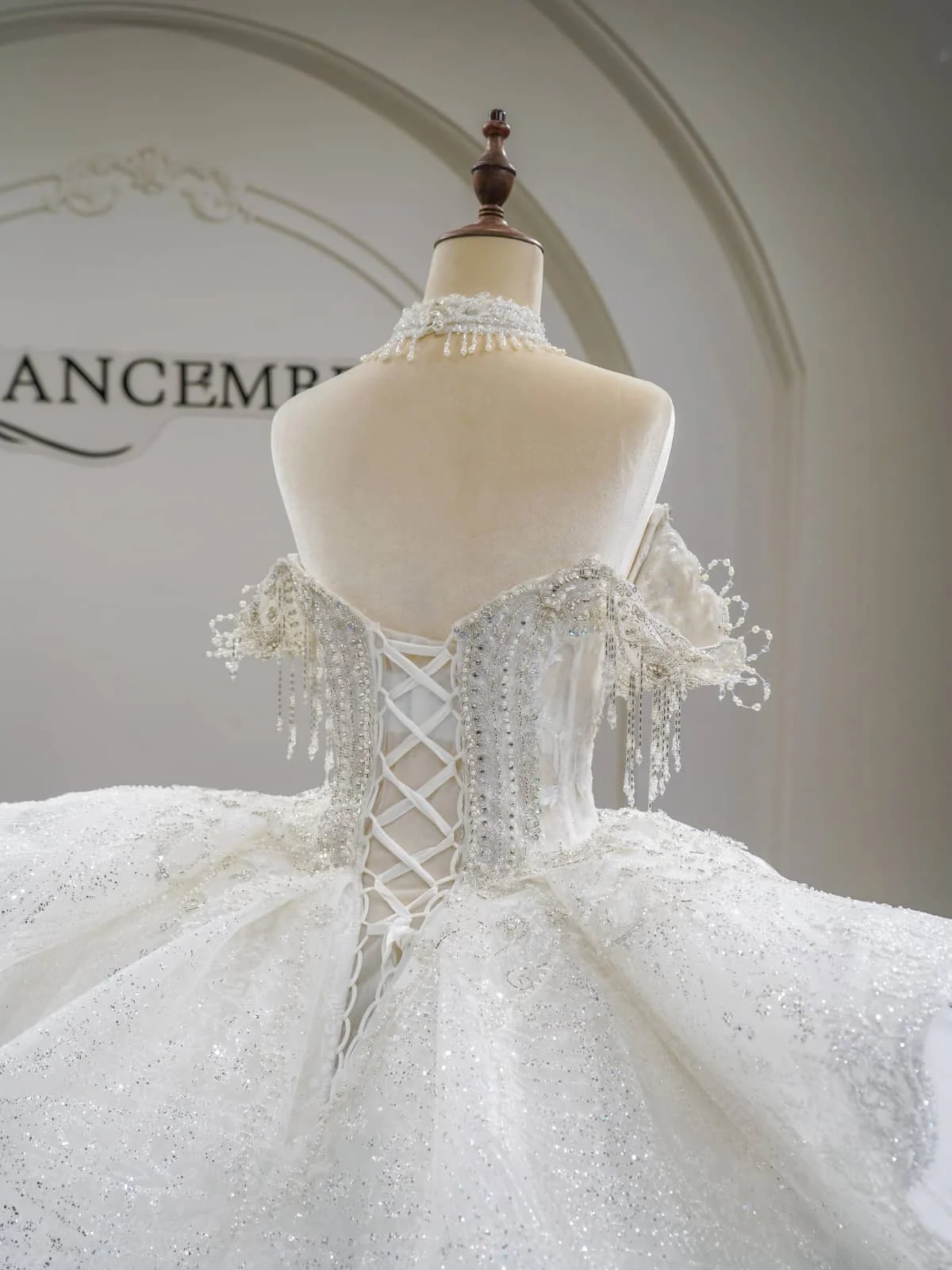 Exquisite Ivory Wedding Dress Ball Gown High Neck Lace Wedding Dress Beaded Bodice Sophisticated Bridal Gown
