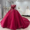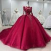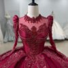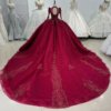 Exquisite Red Ball Gown Beaded Long Sleeves Prom Dress With Long Train For Princess