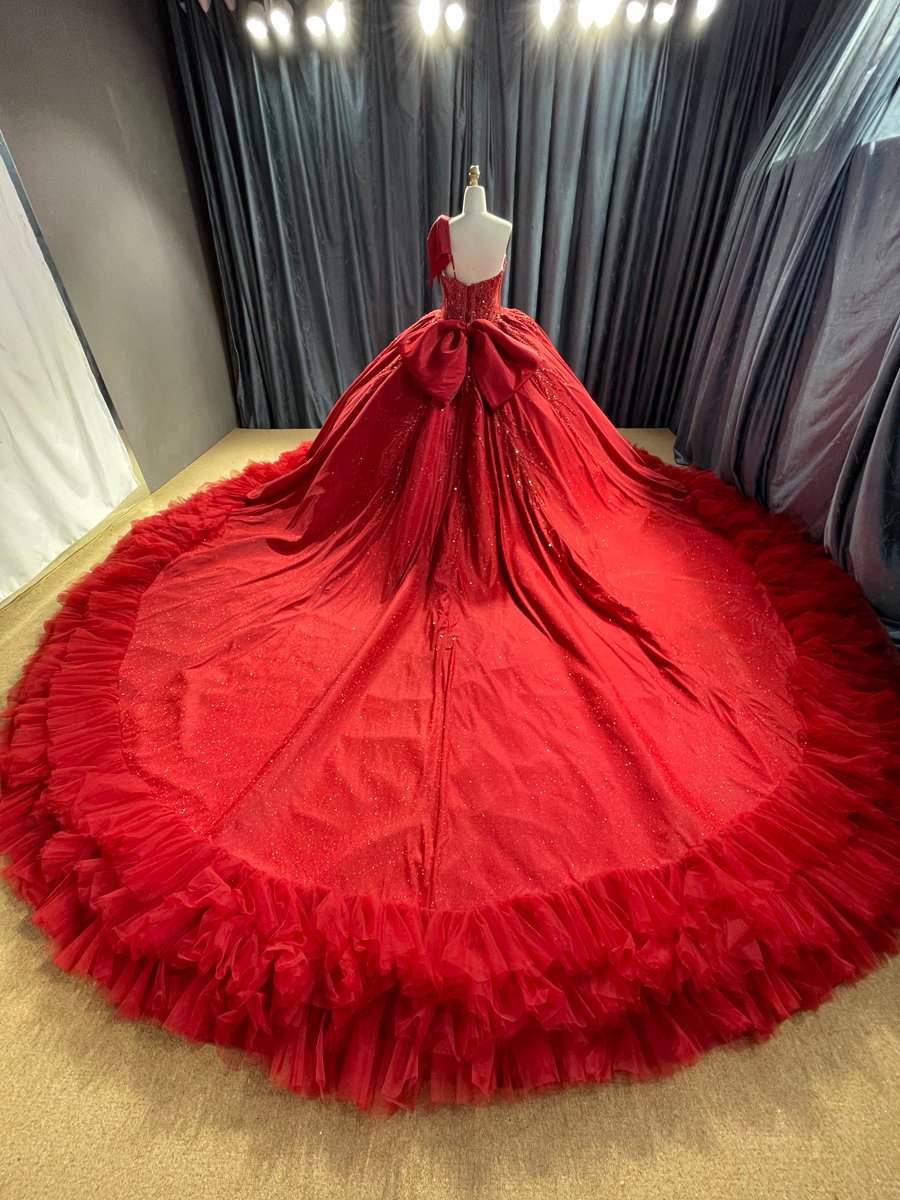 Glamorous Red Evening Dress Off Shoulder Floor Length A Line Sequin Tulle Prom Gown Formal Slit