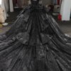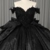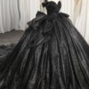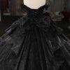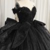 Glittering Black Quinceanera Dress Ball Gown Off Shoulder Big Bow Lace Up Sweet 16 Dress