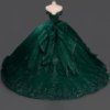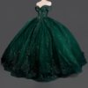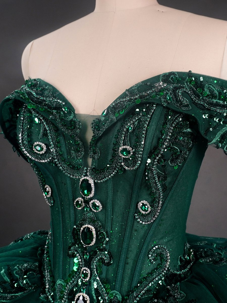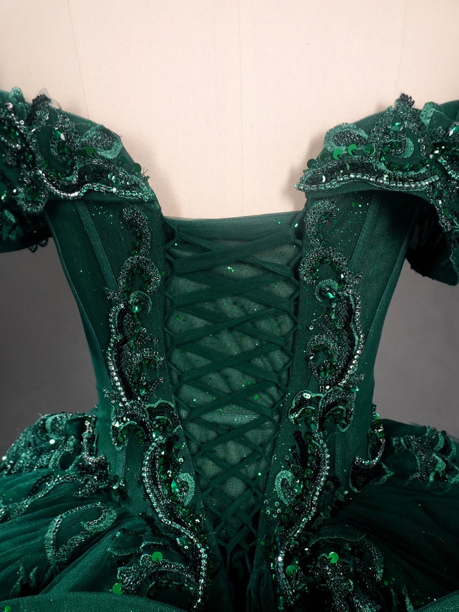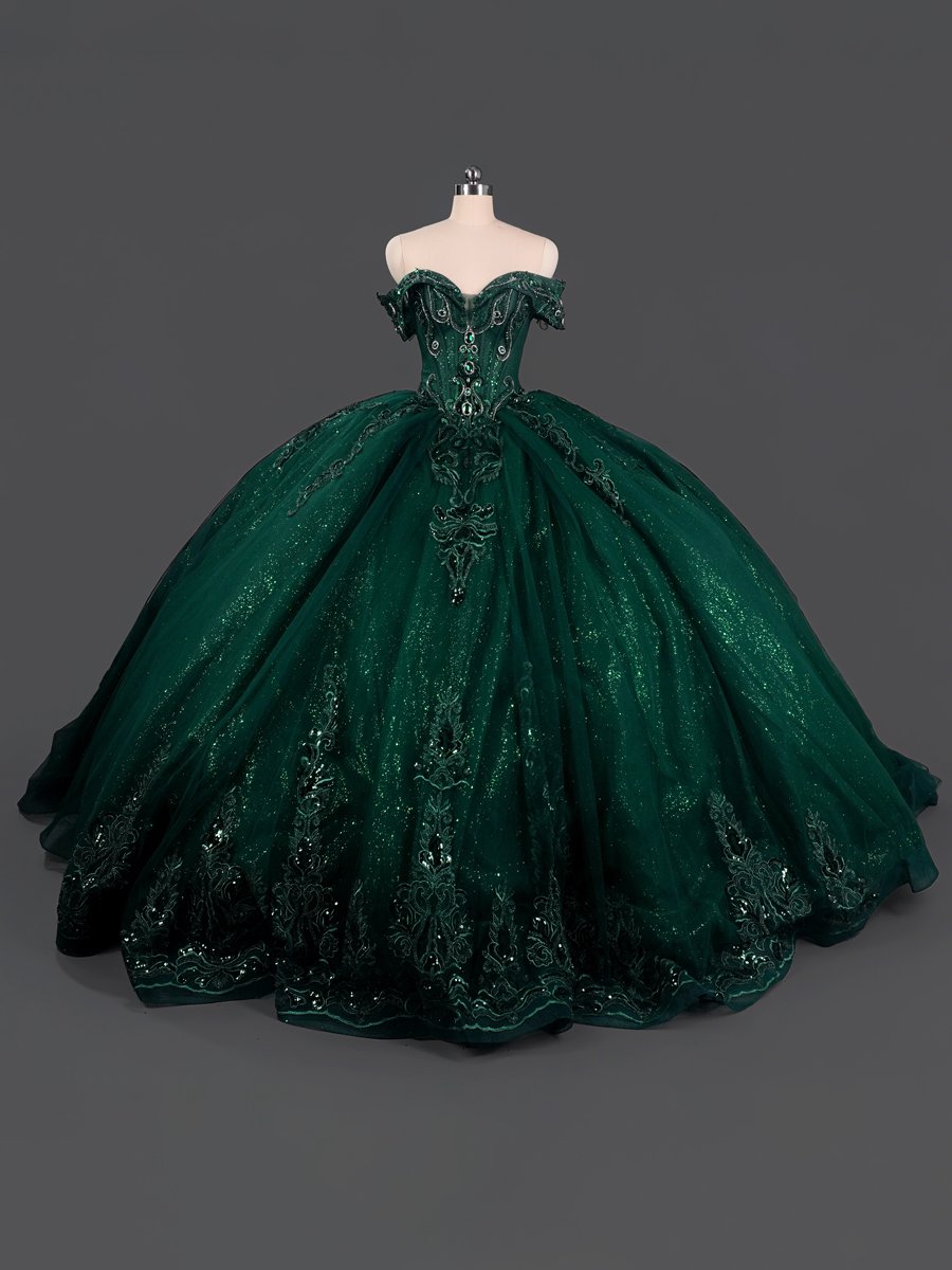 Gorgeous Dark Green Quinceanera Dress Off Shoulder Ball Gown Sparkly Sequin Prom Gown Corset Bow