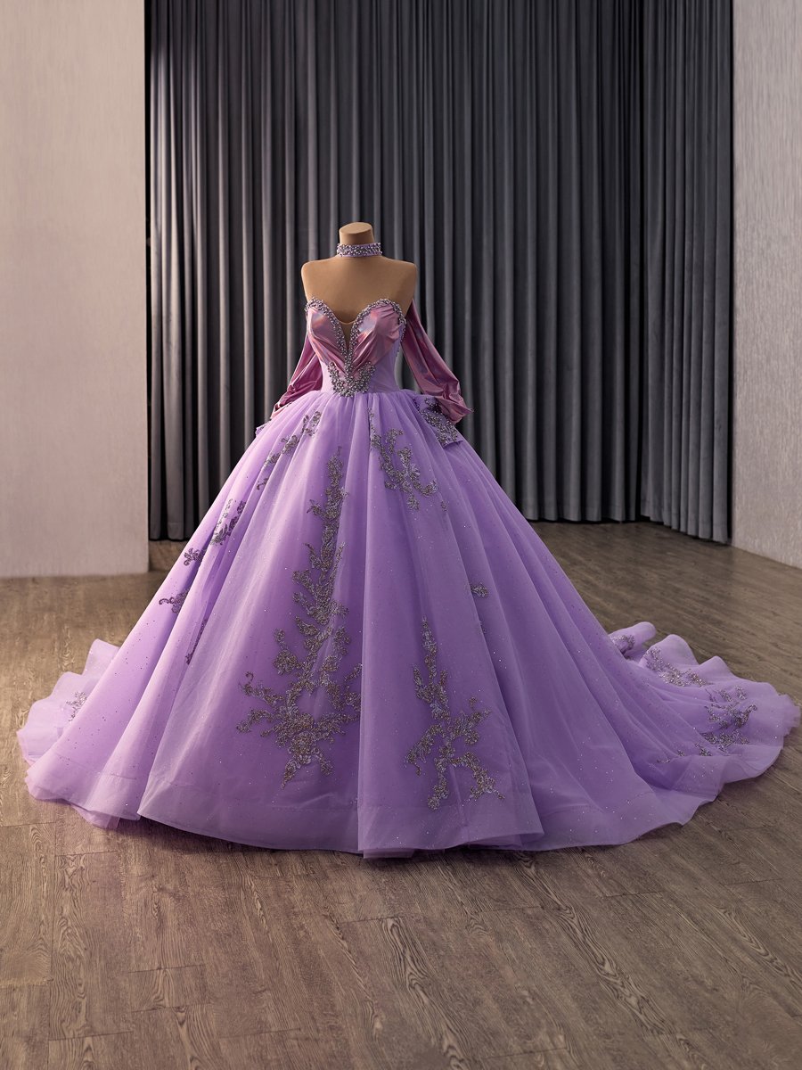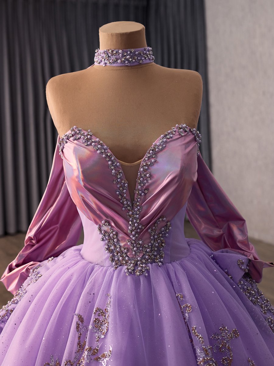 Gorgeous Lavender Quinceanera Dress Off Shoulder Ball Gown Sweet 15 Formal Embroidered Glitter Prom Evening Quinceanera Dress