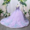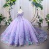 Gorgeous Lavender Sparkly Sweetheart Long Sleeve Floral Quinceanera Dress Ball Gown