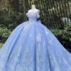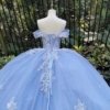 Gorgeous Light Blue Quinceanera Dress Beaded Lace Ruffled Gown Floor Length Sweet Sixteen
