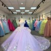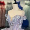 Gorgeous Lilac Floral Applique Quinceanera Dress Off Shoulder Tulle Ball Gown Long Train Sweet 15 Gowns