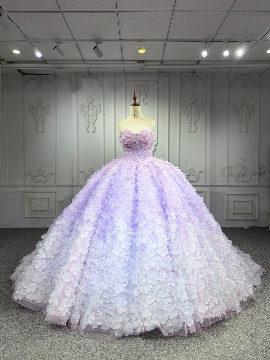 Gorgeous Lilac Ombre Quinceanera Dress Floral Applique Strapless Ball Gown Sweet 15 Gowns