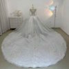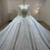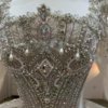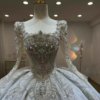 Gorgeous Silver White Wedding Dress Long Sleeve Crystal Beaded Ball Gown Vestido De Novia
