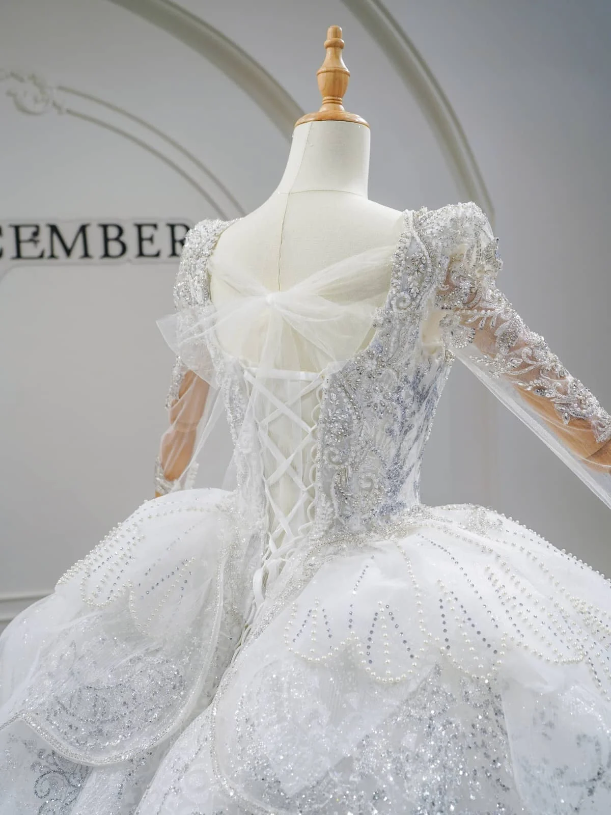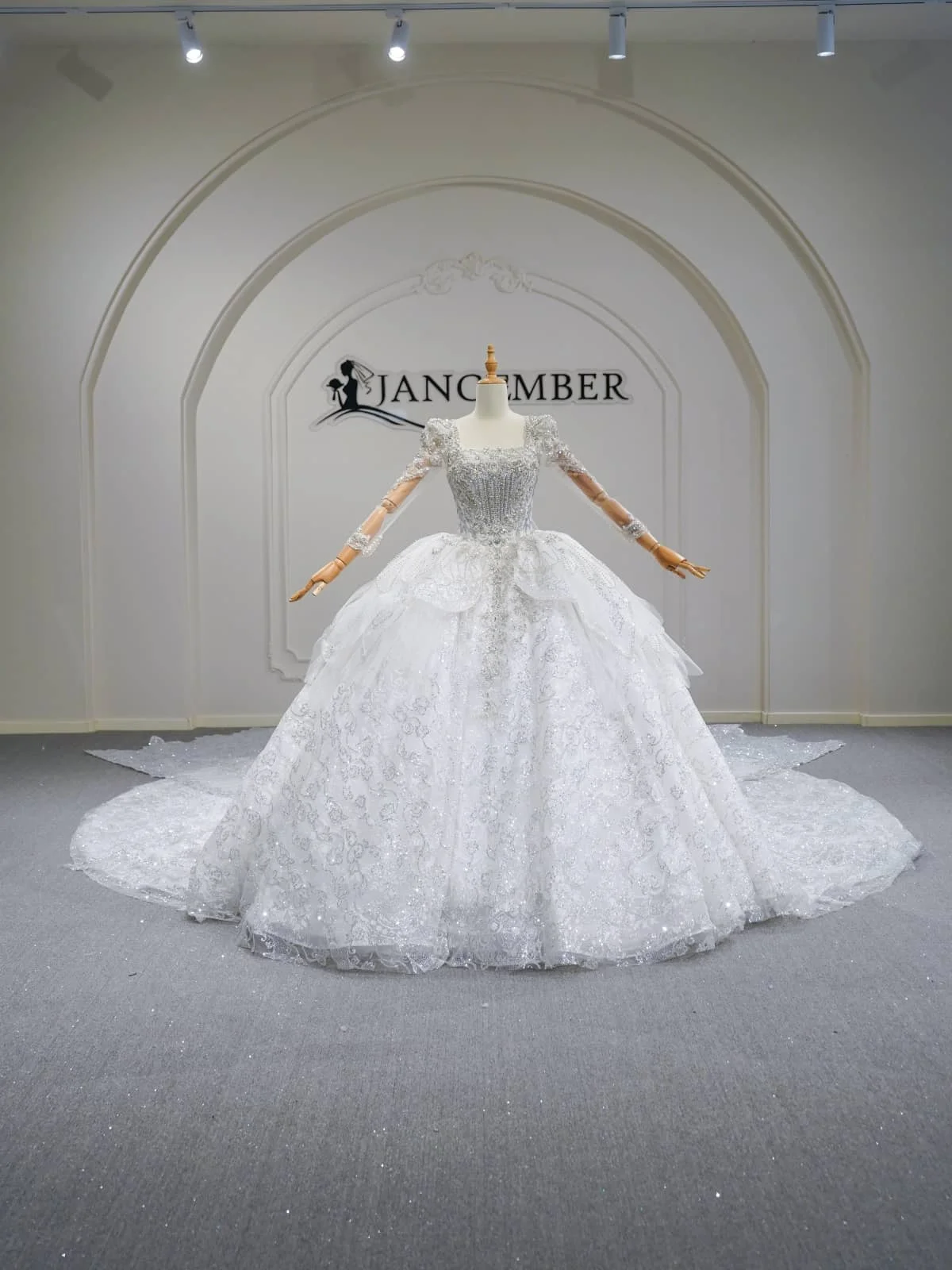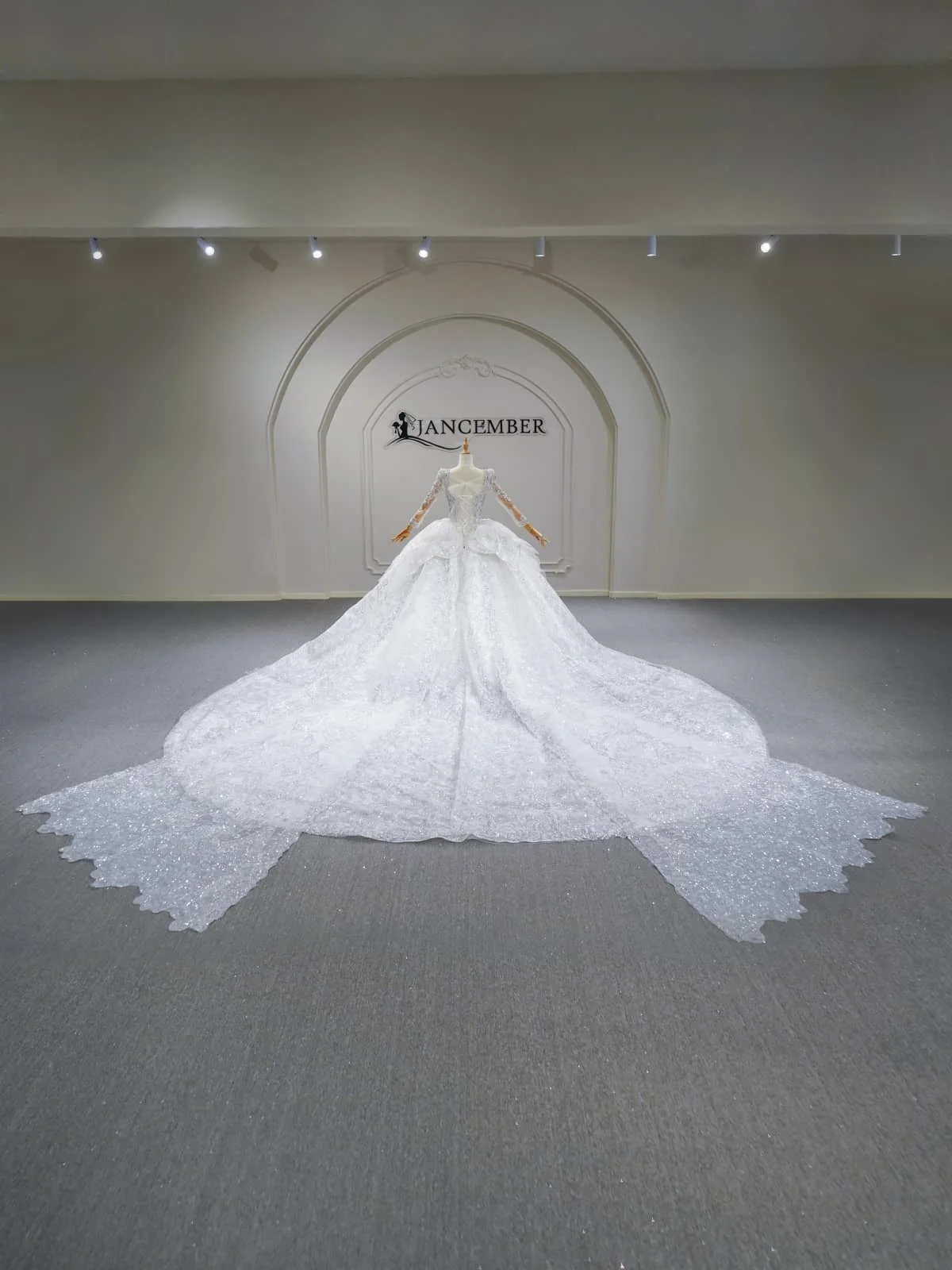 Graceful Ivory Wedding Dress Ball Gown Off Shoulder Satin Wedding Dress Lace Applique Sophisticated Bridal Gown