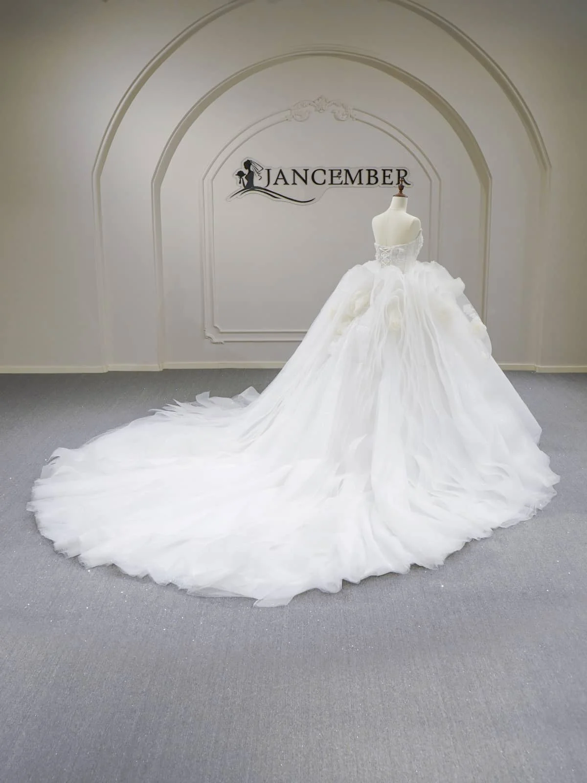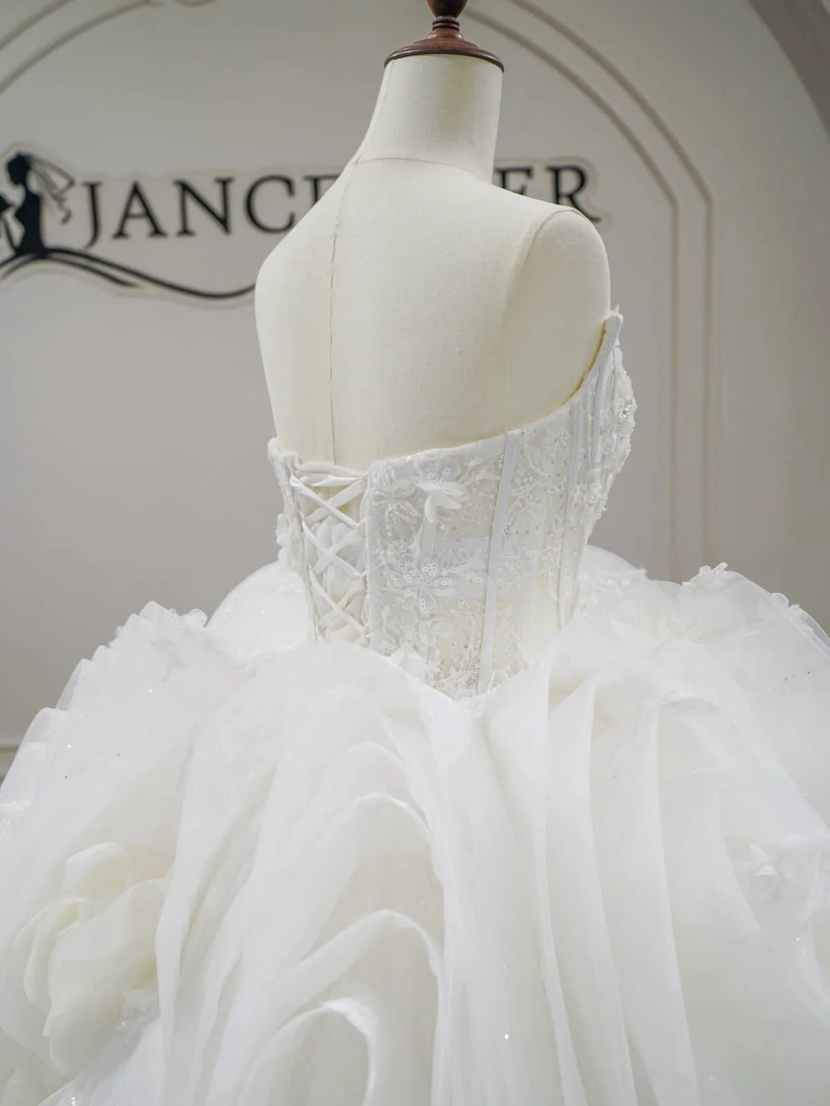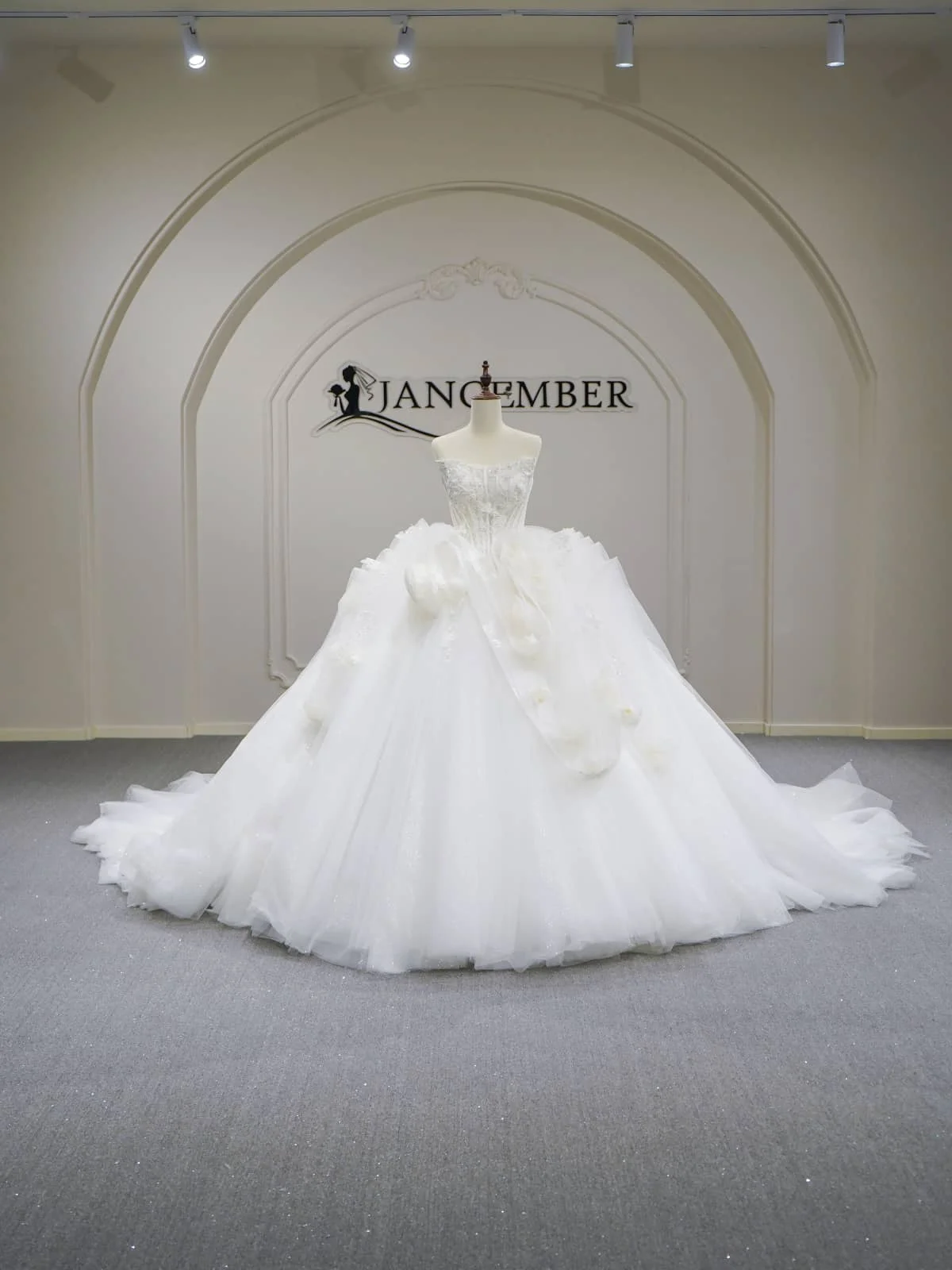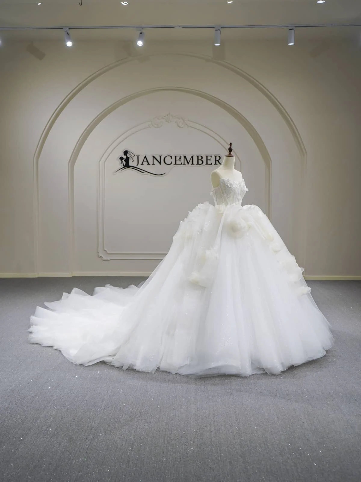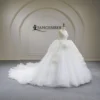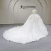 Grand Ivory Wedding Dress Ball Gown Long Sleeve Glitter Wedding Dress Mock Neck Luxury Princess Bridal Gown