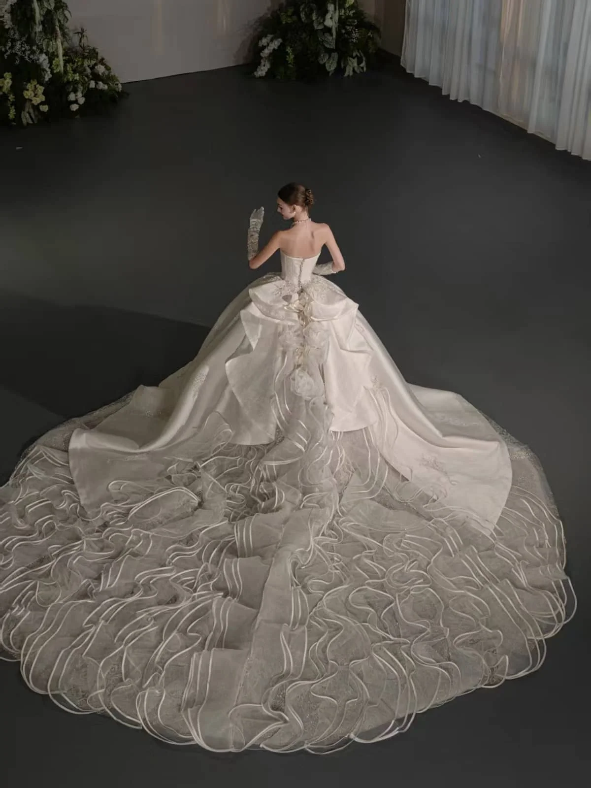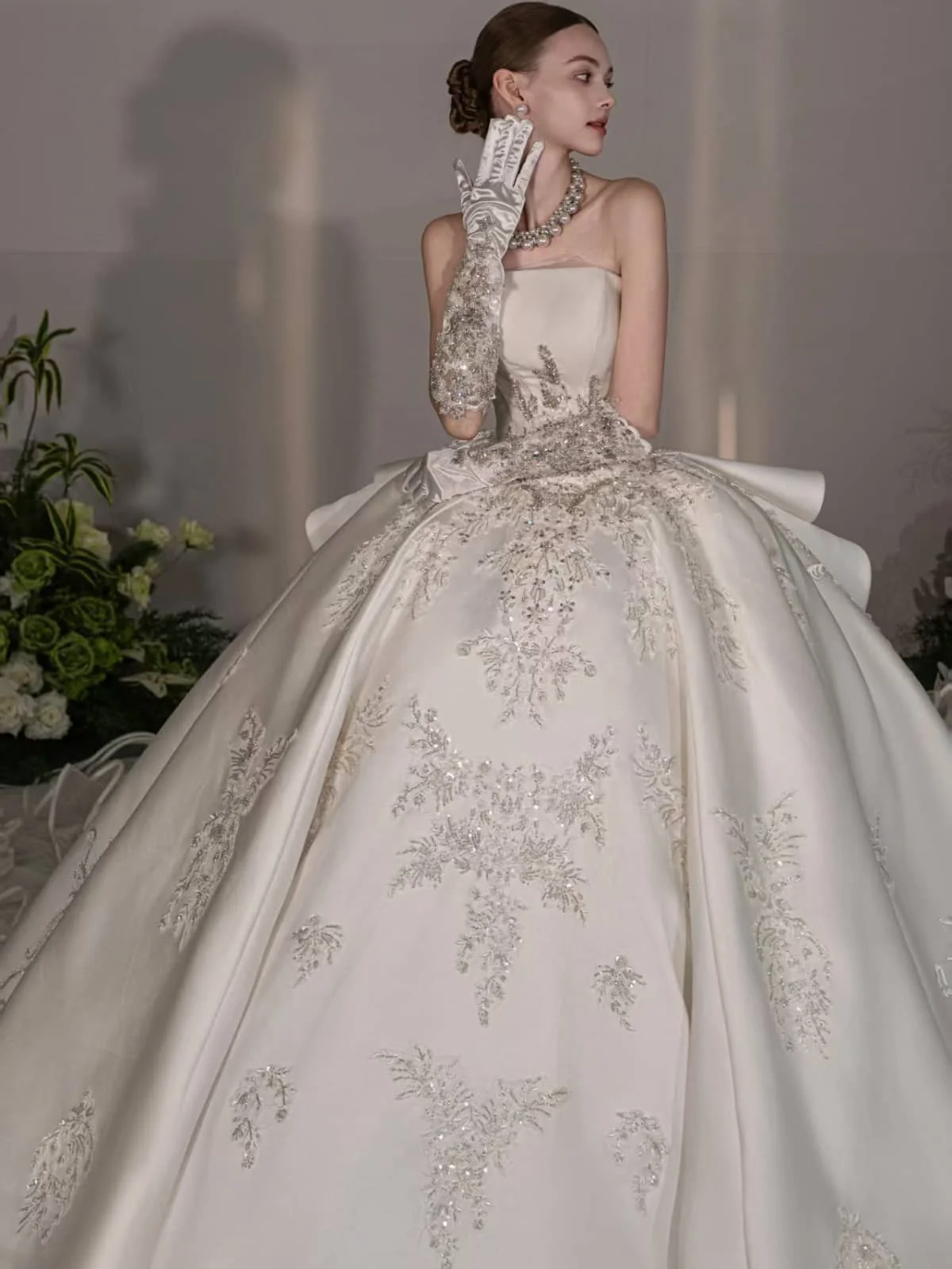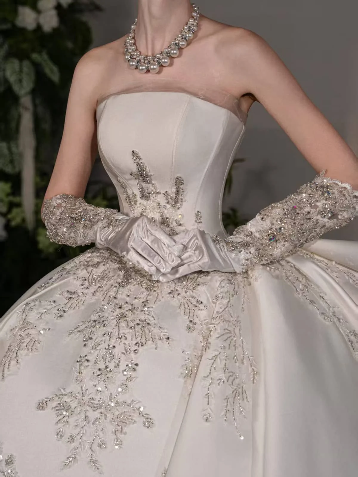 High End Ivory Wedding Dress Sleeveless Satin Pleated Wedding Dress Simple Elegant Bridal Gown