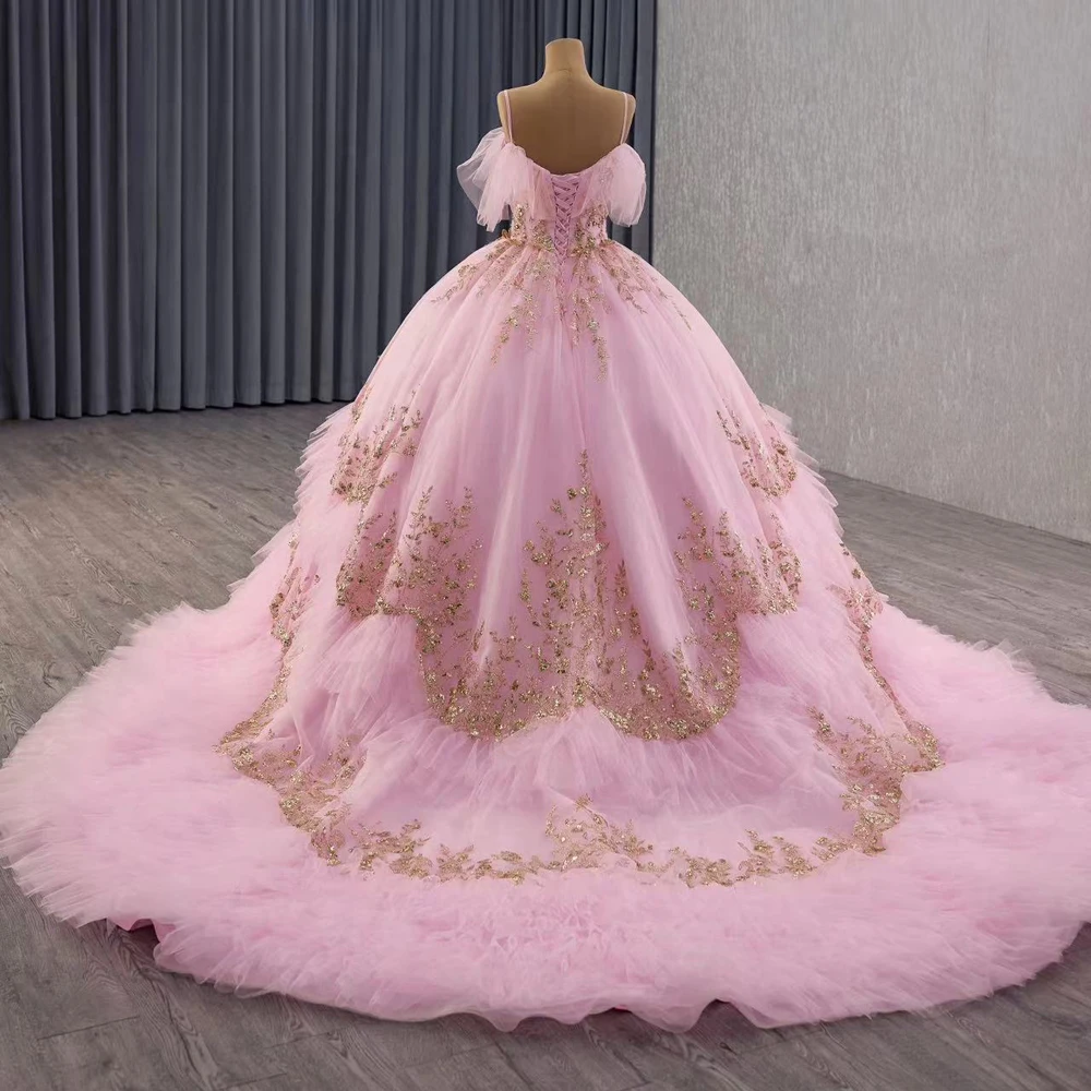 Light Pink Quinceanera Dresses Off Shoulder Rosa Organza Evening Dresses Vestidos De Quinceanera Customized 251016