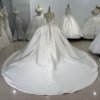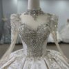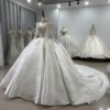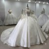 Luxurious Beaded Ivory High Neck Ball Gown Satin Wedding Dress Long Sleeve Gown Bridal Dress
