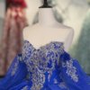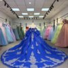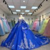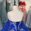 Luxurious Royal Blue Quinceanera Dress Ball Gown Off Shoulder Long Train Appliques Sweet 16 Dress