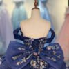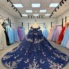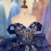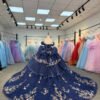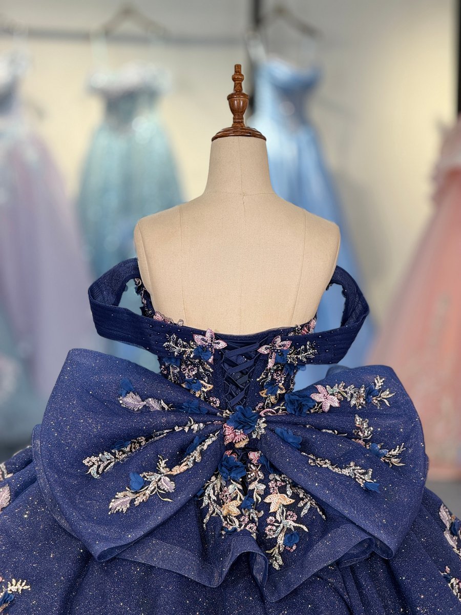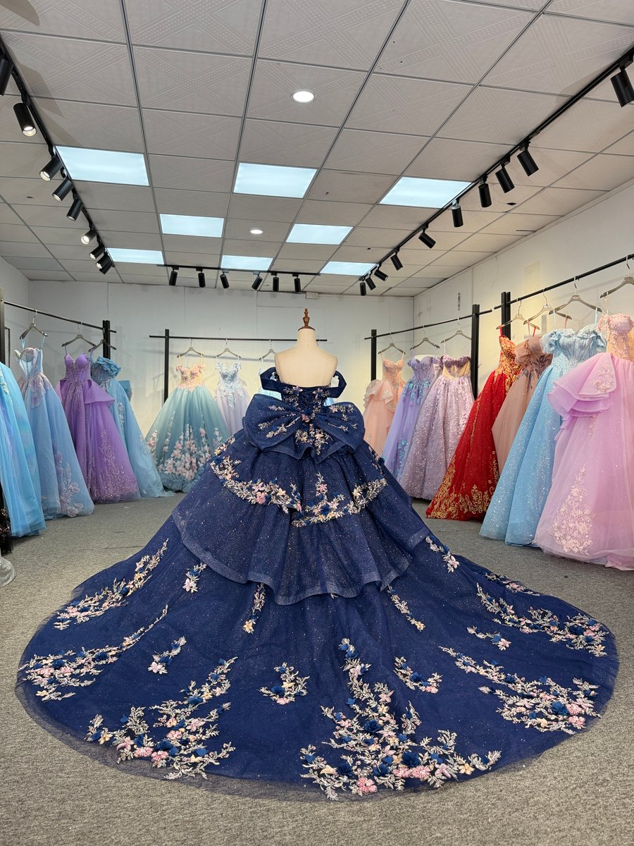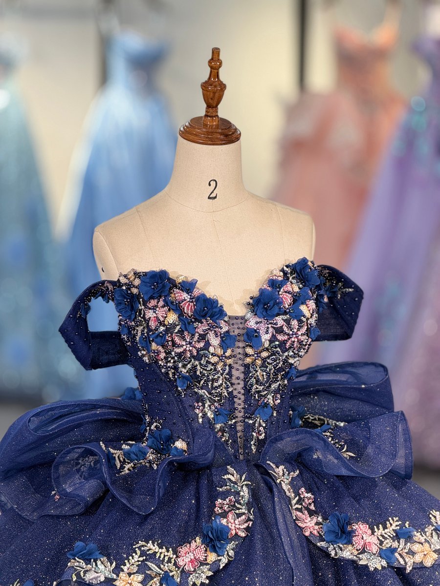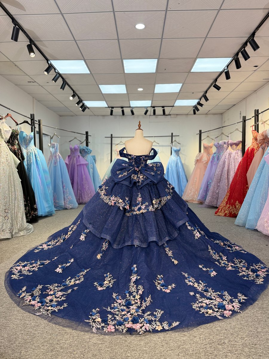 Luxury Navy Blue Quinceanera Dress Strapless Floral Embroidery Quinceanera Dress Sparkly Ball Gown Formal Evening Gown