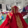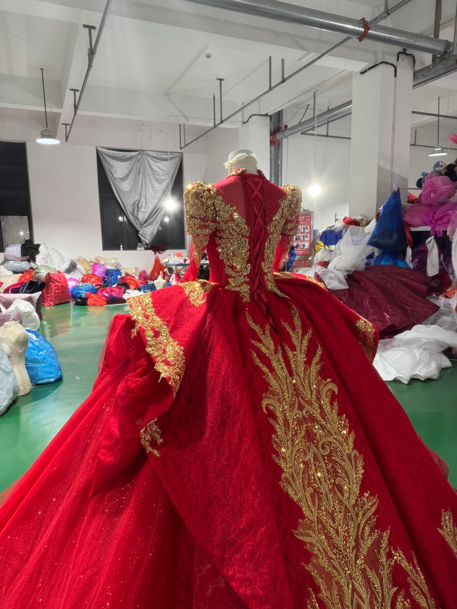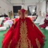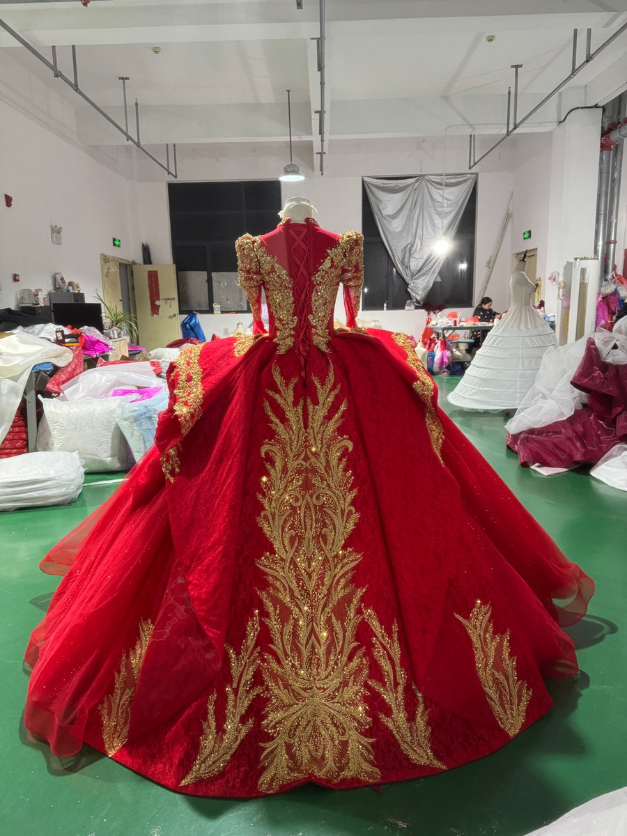 Luxury Red Quinceanera Dress Ball Gown Gold Lace Applique Beaded Sparkly Tulle Quinceanera Dress Sweet 16 Princess Prom Gown Off The Shoulder Pageant Dress