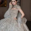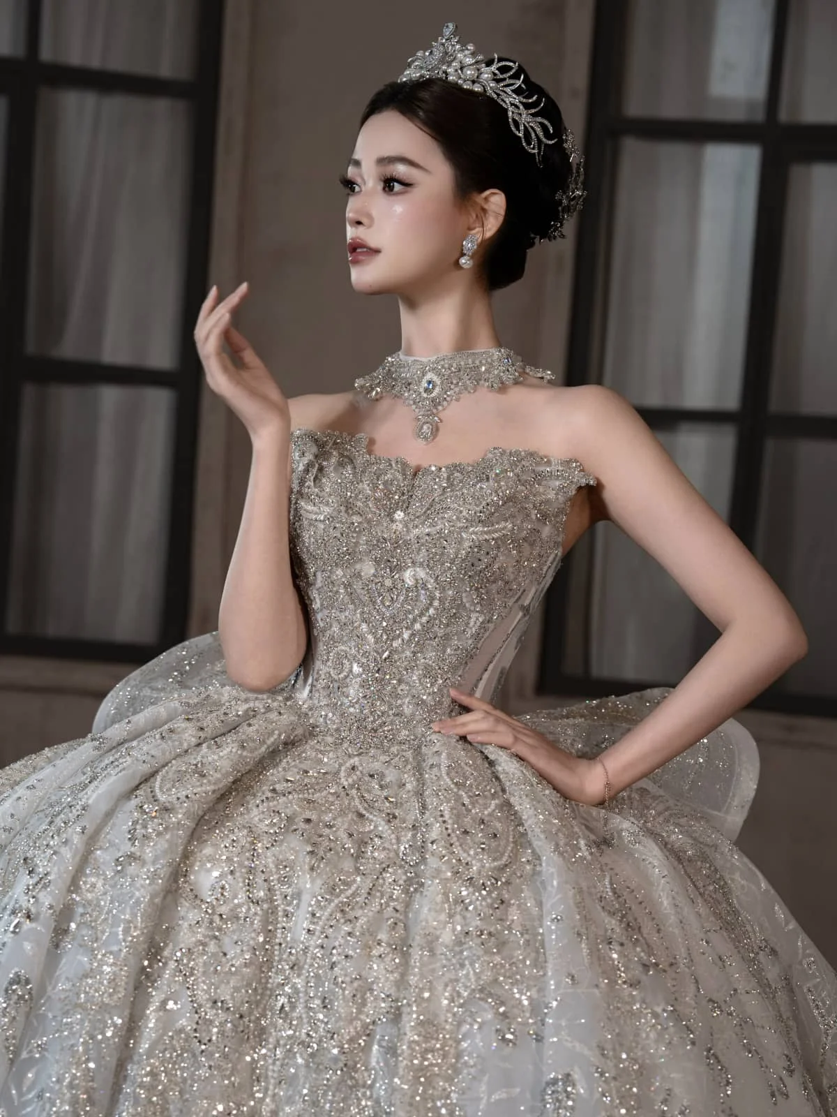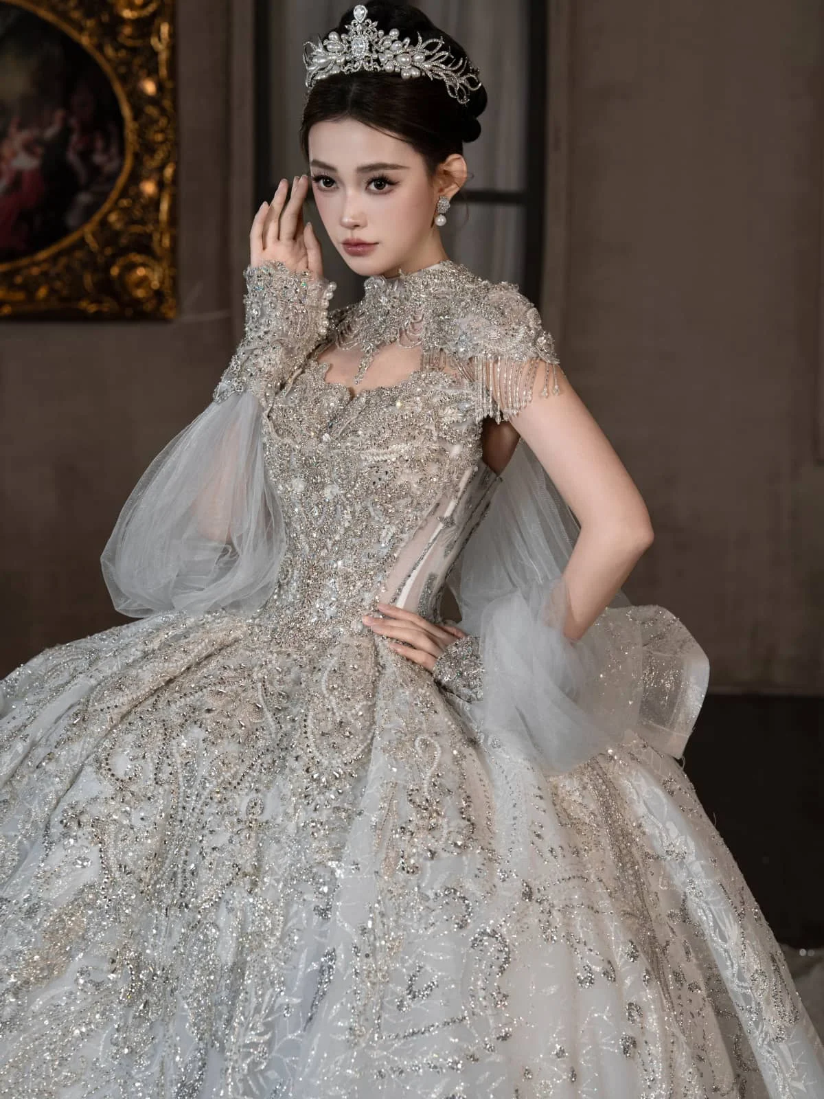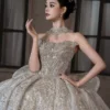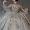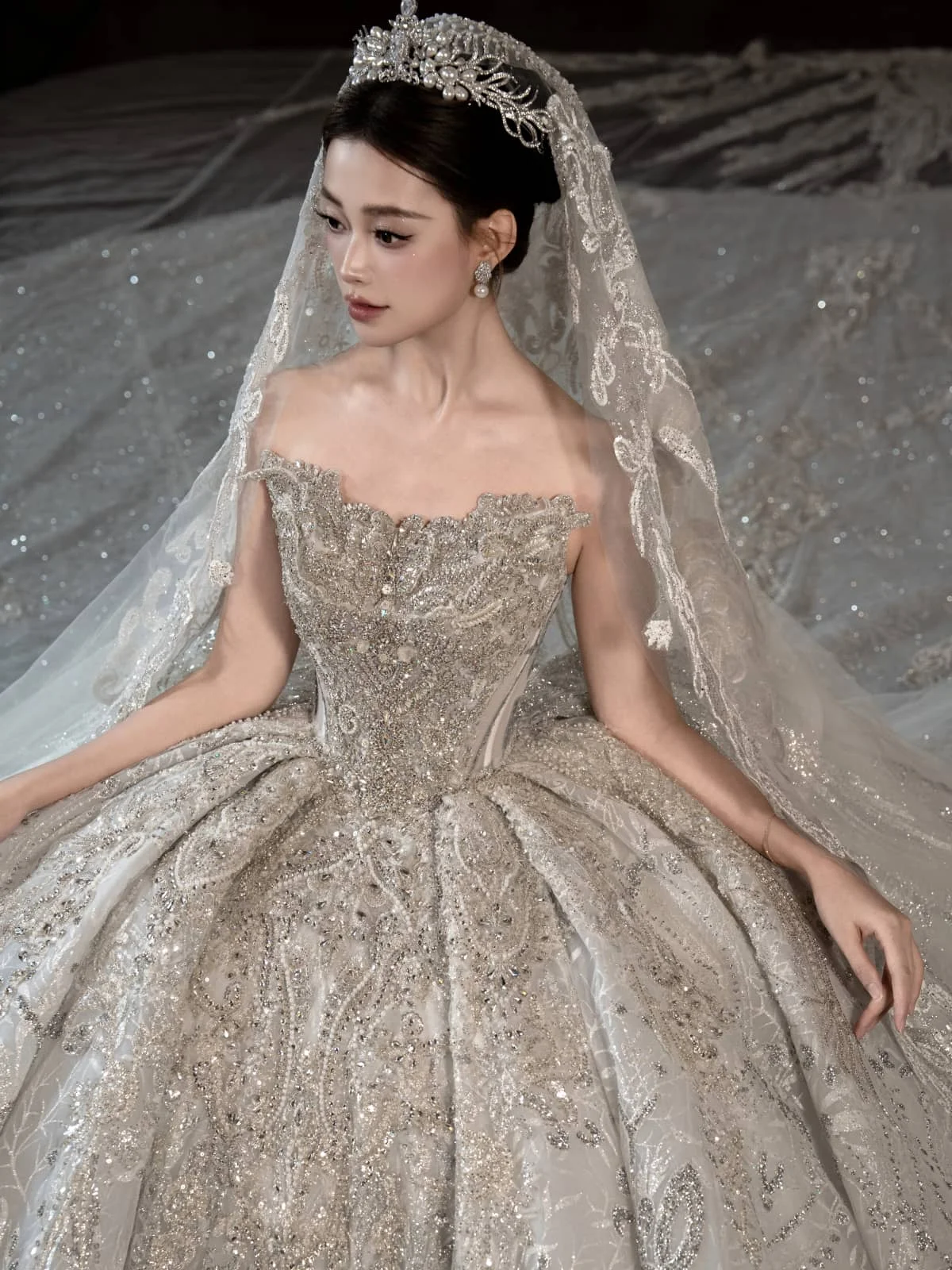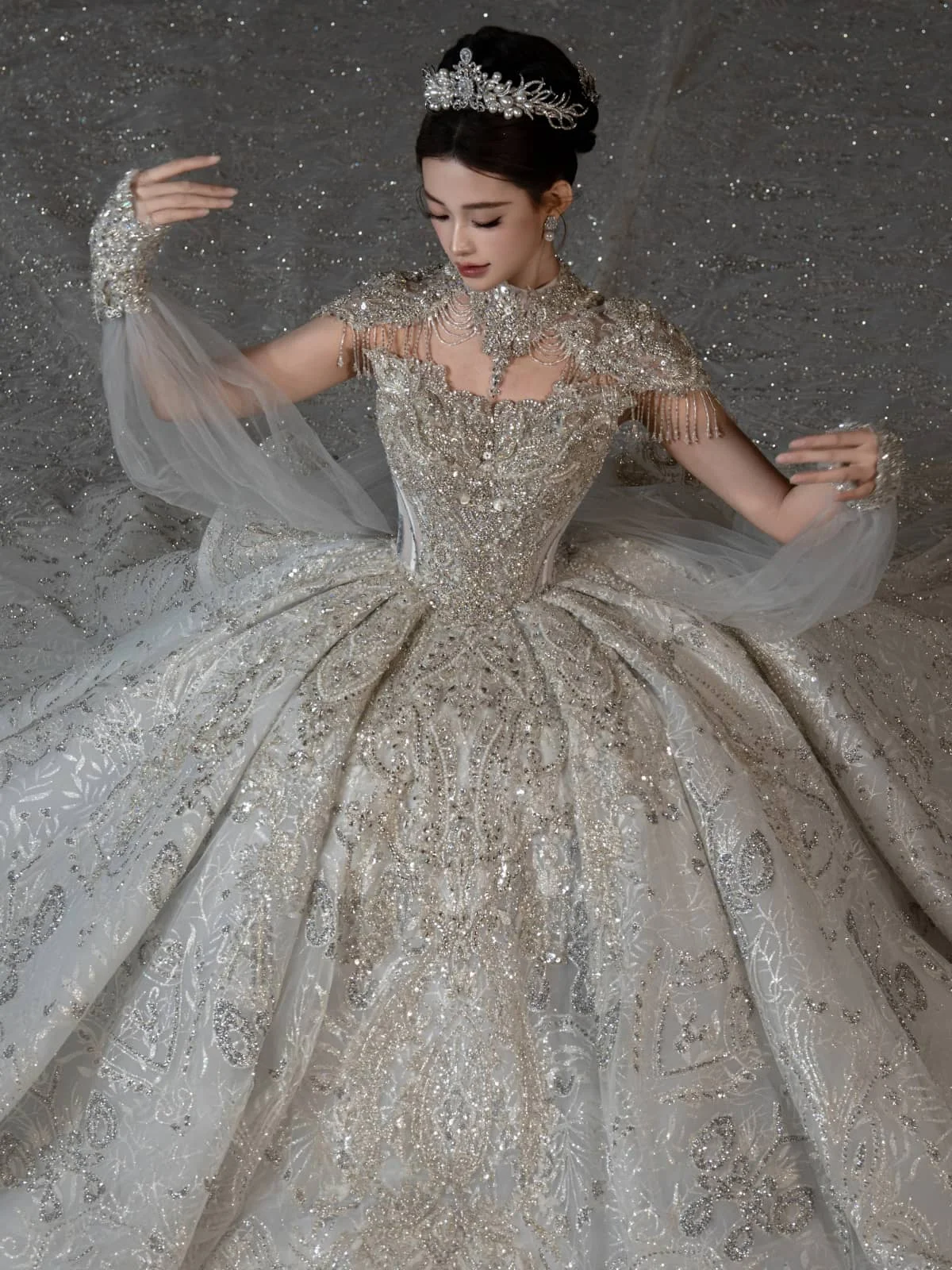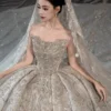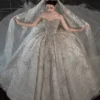 Opulent Ivory Wedding Dress Ball Gown Sparkly Veil Sequin Wedding Dress Full Skirt Heavy Beaded Bridal Gown