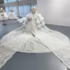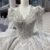Perfect Wedding Dress Organza With Beading Princess Ball Gown V-Neck Full Sleeve Peals Wedding Lace Up Vestido De Novia Pearls MN273