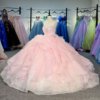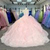 Princess Pink Quinceanera Dresses Customized Beaded Strapless Dress Corset Lace Up vestidos de 15 años quinceañeras 1310