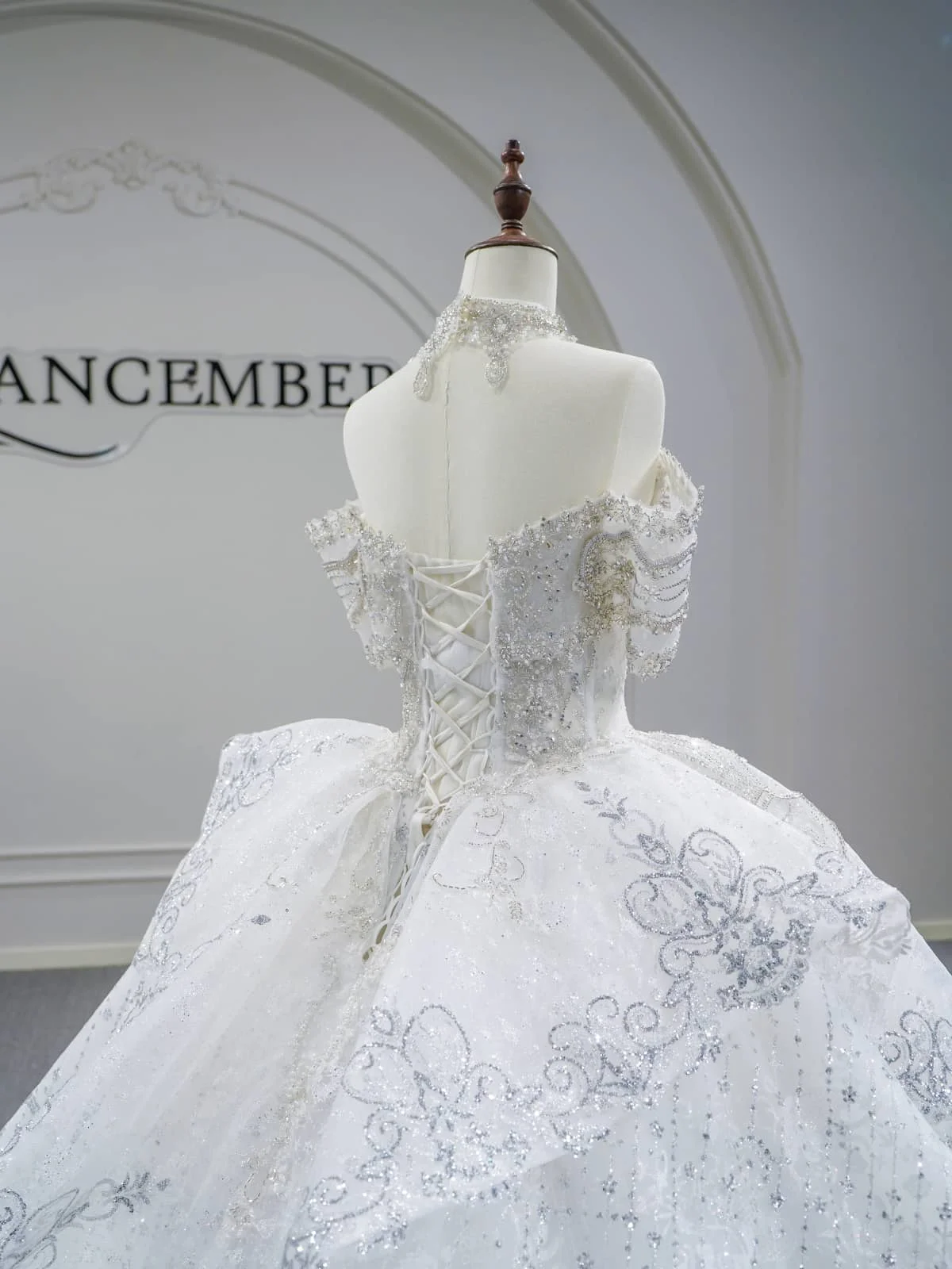 Radiant Ivory Wedding Dress Ball Gown Sparkly Sequin Half Sleeve Wedding Dress Heavy Beaded Princess Bridal Gown