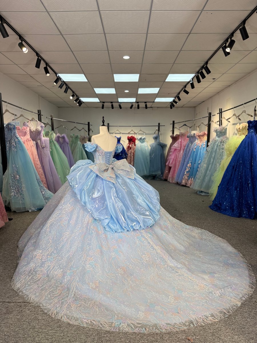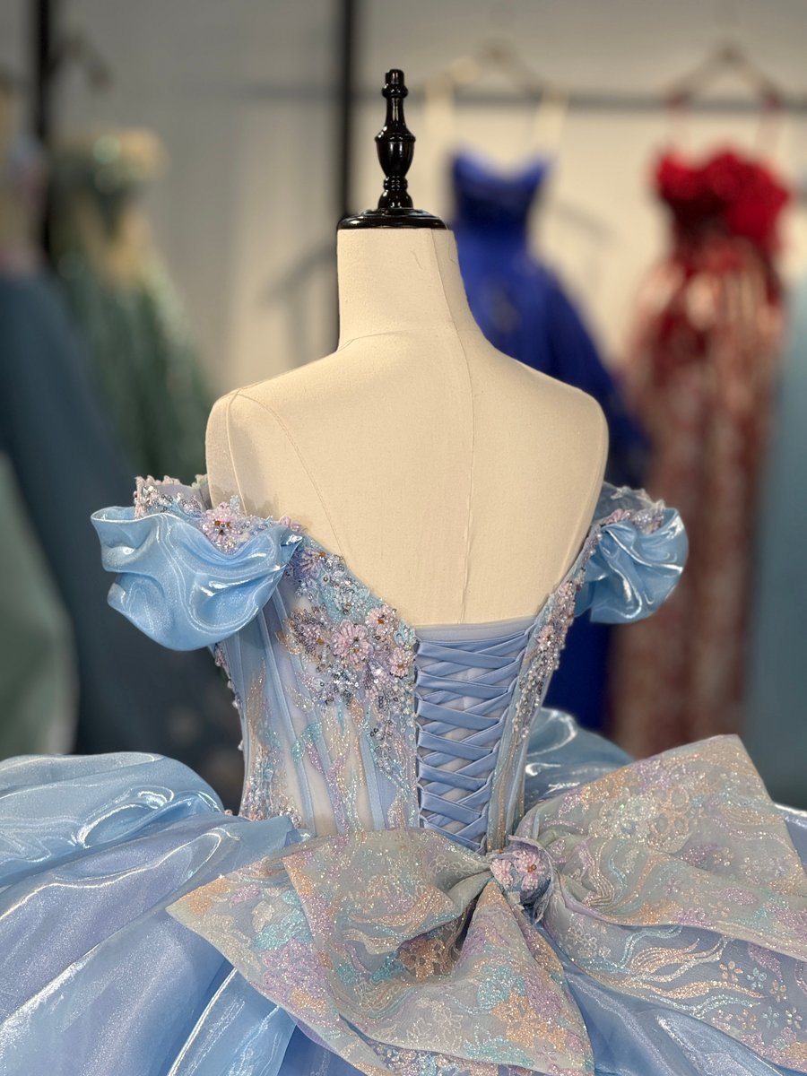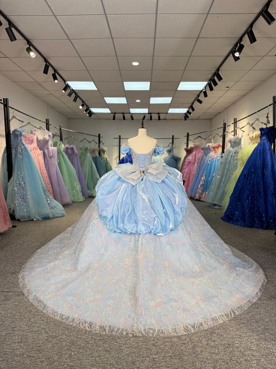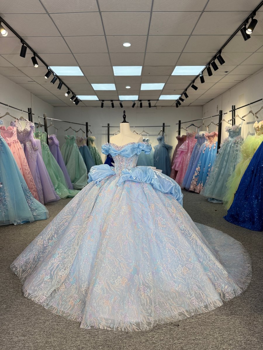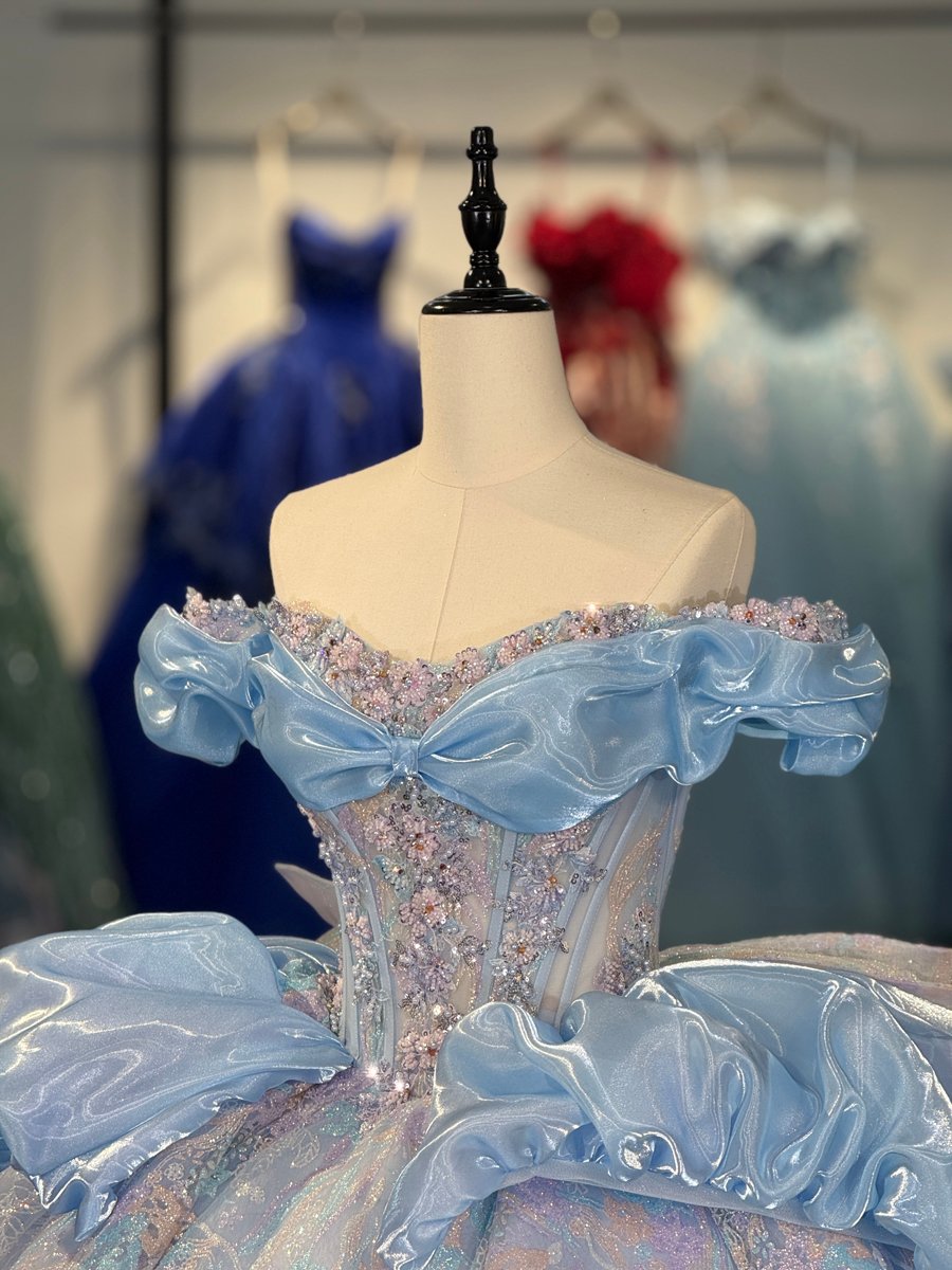 Regal Light Blue Cinderella Quinceanera Dress Ball Gown Off Shoulder Sparkle Tulle Sweet 16 Dresses