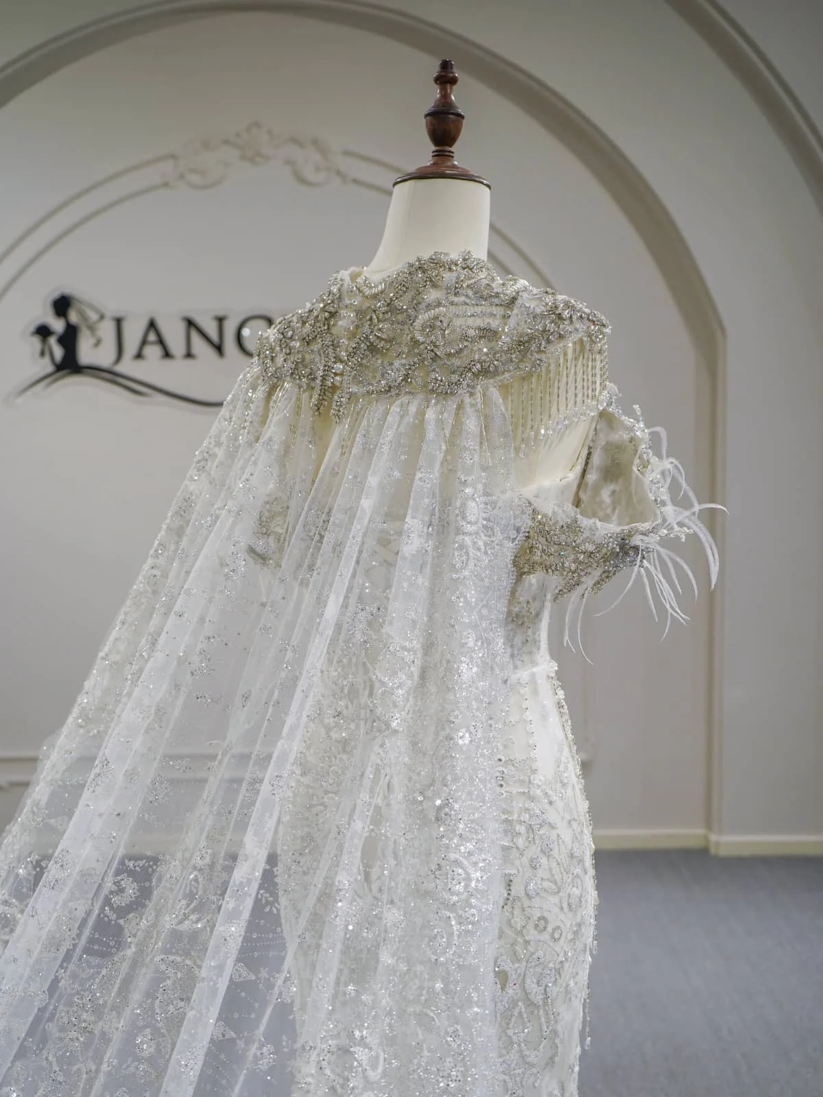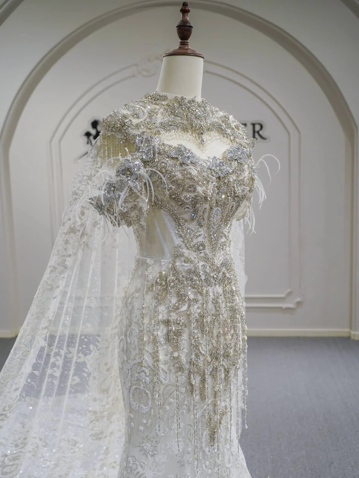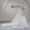 Royal Ivory Wedding Dress Ball Gown Illusion Sleeve Sparkly Wedding Dress Beaded Tulle Couture High End Bridal Gown