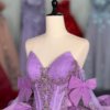 Shimmering Crystal Sparkly Lilac Quinceanera Dress Sweetheart Neckline Detachable Bows Ruffled Skirt Ball Gown Long Train Sweet 15 Masquerade